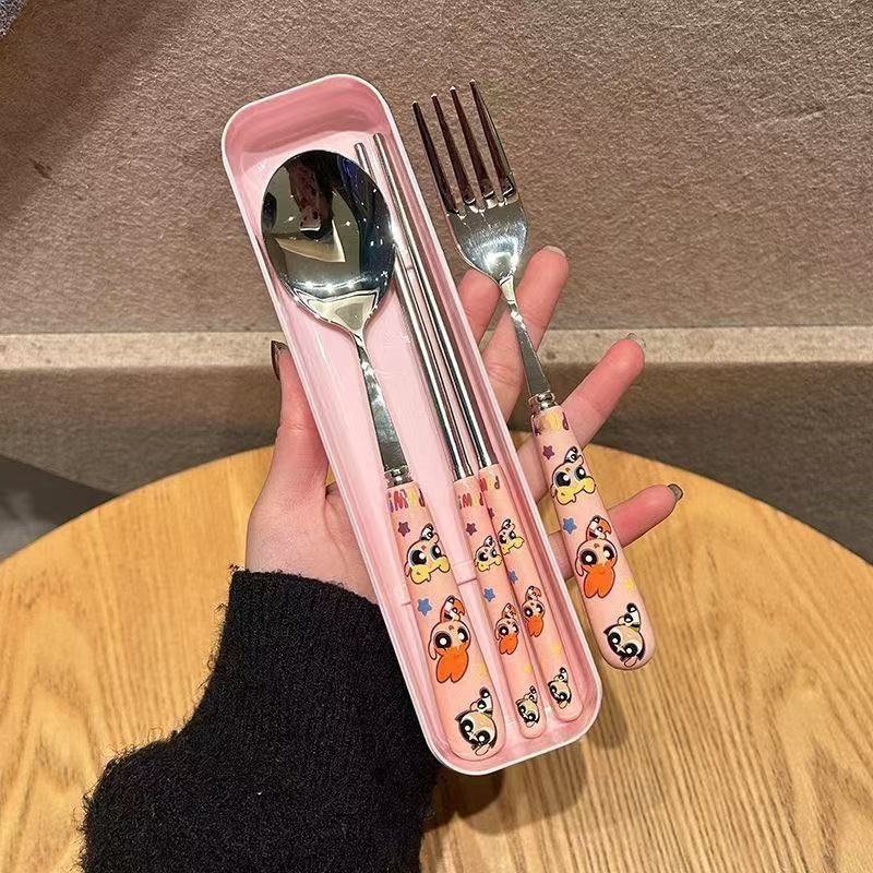 [SNS話題に中]SNSでバズる パワーパフガールズ 食器 箸 スプーン フ 3点セット 食器セット 弁当用 携帯便利 菜箸 鋼ポータブル食器