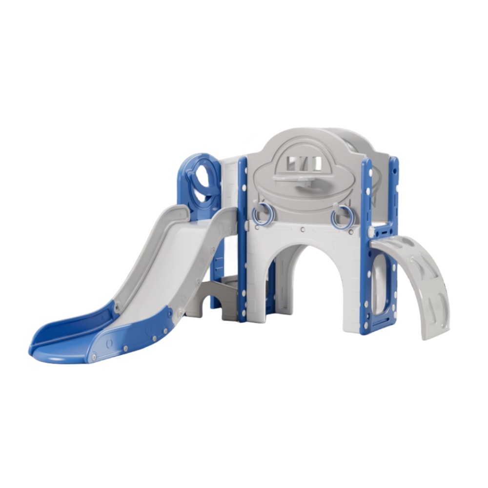 [国内即発送] 送料無料 すべり台 キャッスル 大型遊具 すべりだい スライダー 室内 遊具 バスケットゴール 収納 ブルー×グレー
