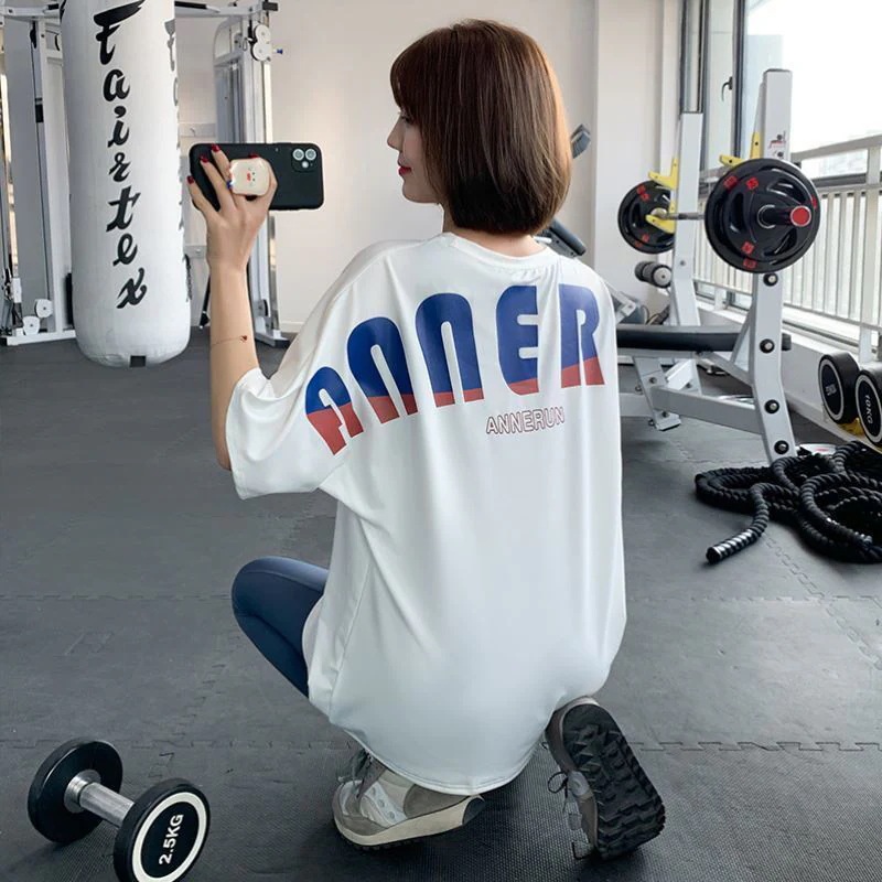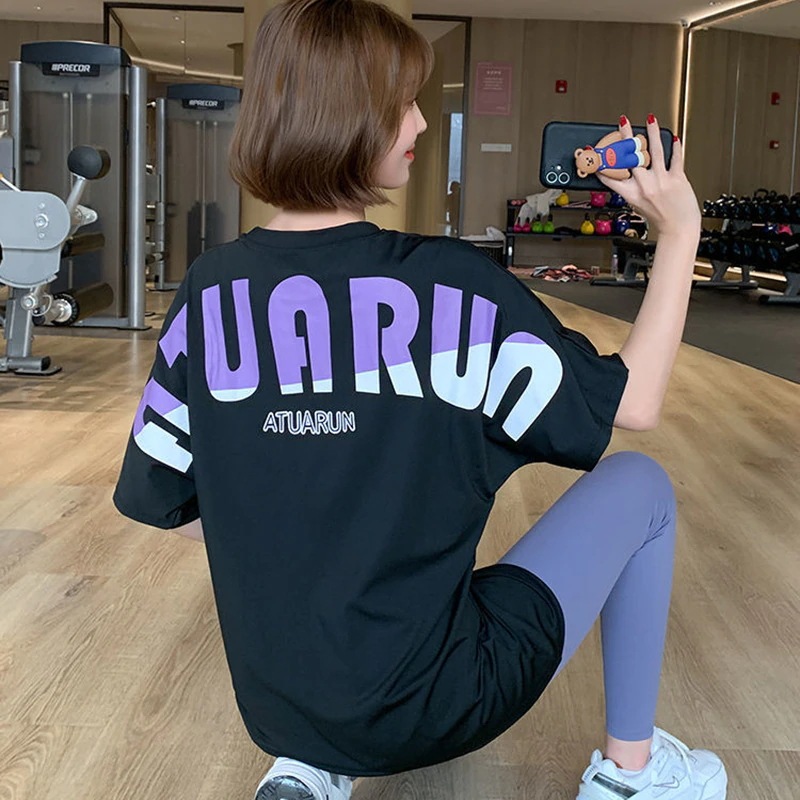 ヨガ半袖夏ゆったり速乾カバーアップ大サイズ運動トレーニングトップスレディースぽっちゃり体型ランニングフィットネスシャツ[3カラー]