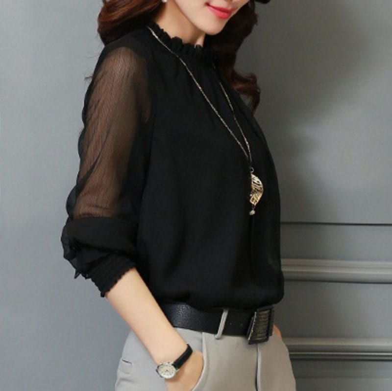 2026春秋新作レースシフォンブラウスレディースチュールフリルスタンドカラー長袖インナーブラウス
