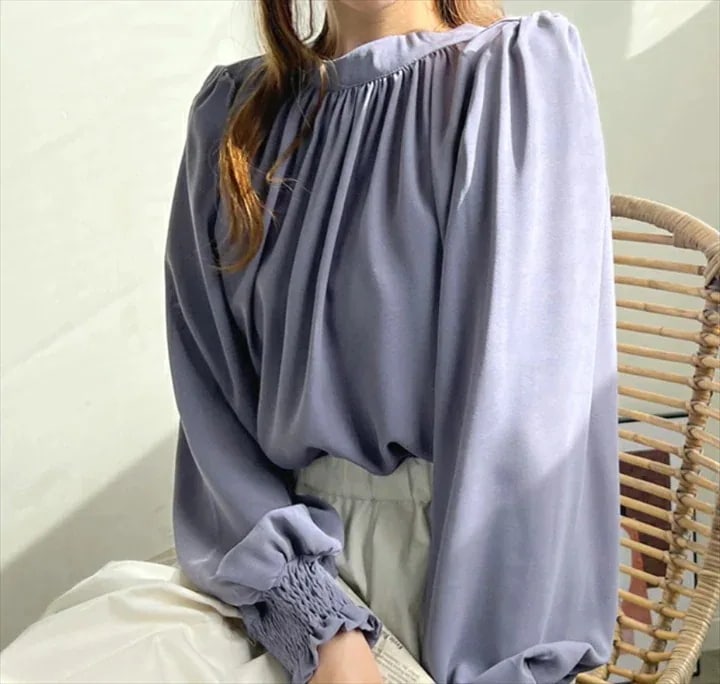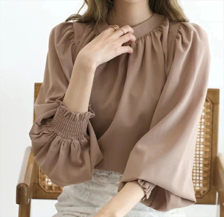 2026速乾性シワになりにくいラウンドハイネックパフスリーブシフォンシャツ[5カラー]