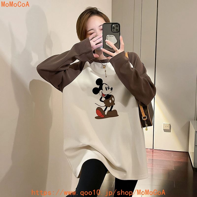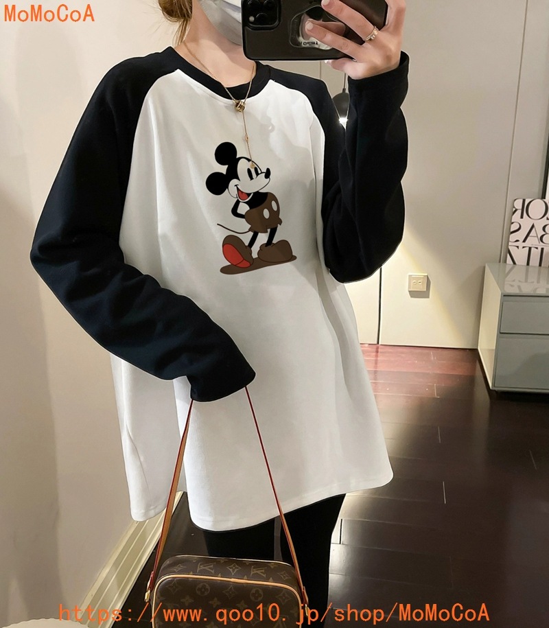 ロングTシャツ ミッキーマウス 長袖 oversize マタニティ Tシャツ トップス ブラウス 長袖tシャツ 韓国ファッション tシャツ レディース 秋冬 ティーシャツ ブラウス マタニティウェア