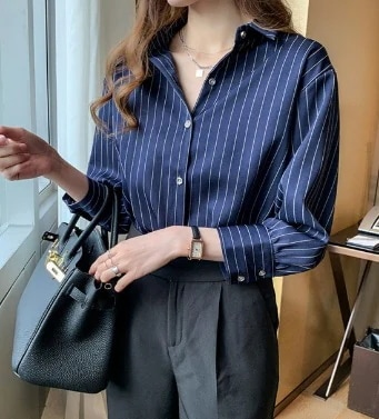2026年春新作 ニッチなトップス レトロな香港テイストのストライプシャツ デザイン性のある大人っぽいシャツ