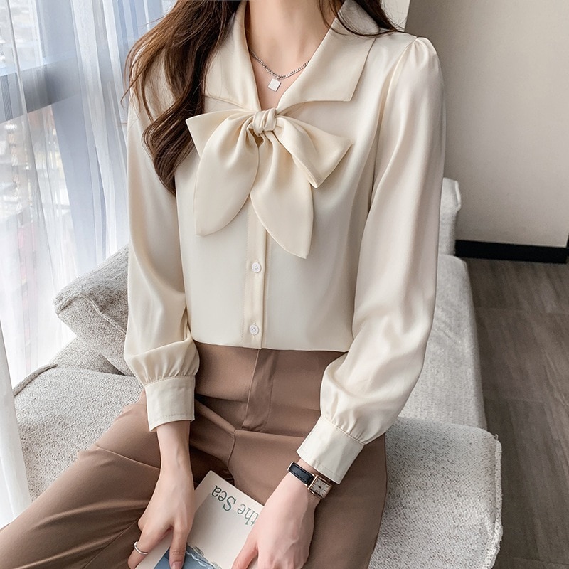2026年新作長袖シャツリボン付きシフォンブラウスデザイン性豊かなシャツトップス