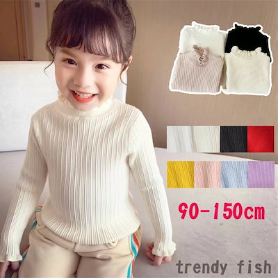 キッズ タートルネック 白 黒 ニット 子供服 女の子 キッズ バイカラー リブニット ハイネック リブ タートルニット インナー セーター ジュニア 秋冬 春秋 カジュアル おしゃれ フリル 白 黒