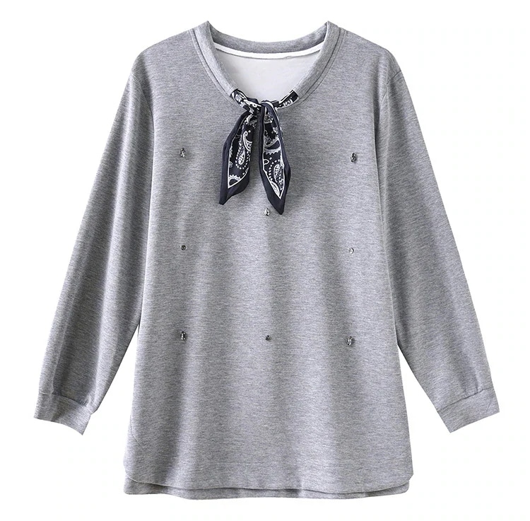 ファッション風釘ドリルグレーのスウエット型ゆったりせラウンドネック トップス 上着ヨーロッパ風オーバーサイズ女服