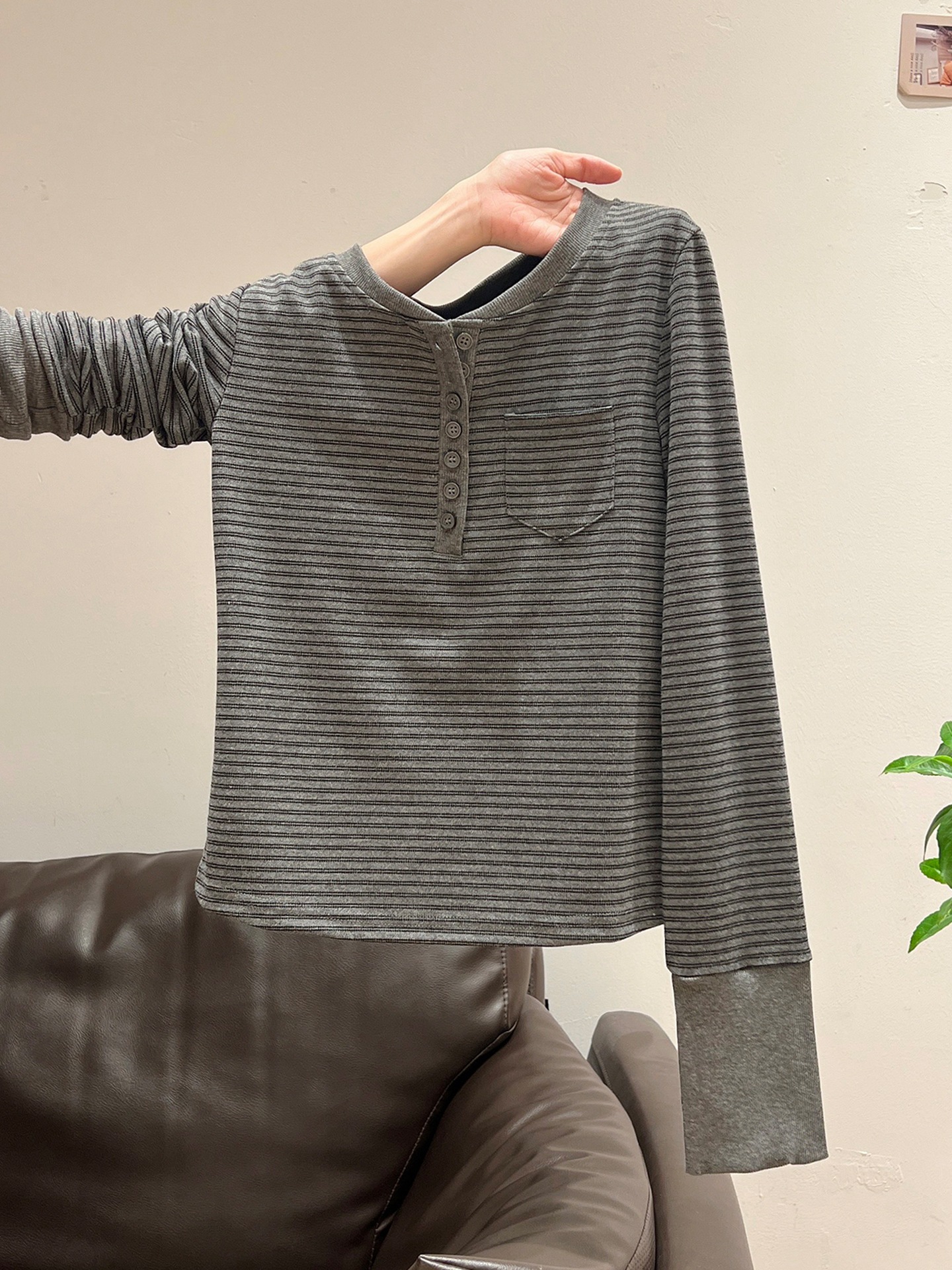 ストライプカラーブロック長袖Tシャツ 女性用新作 フィット感インナーベースレイヤートップス