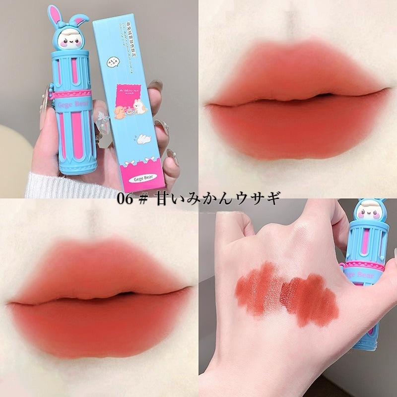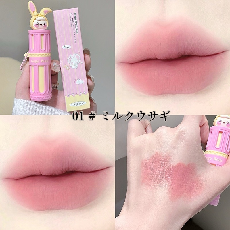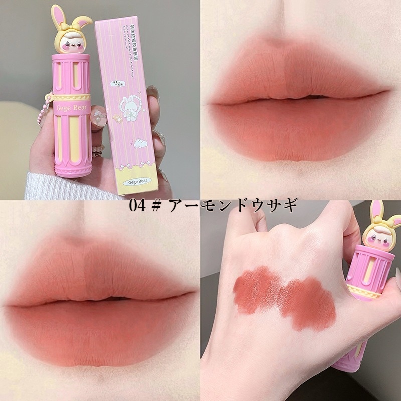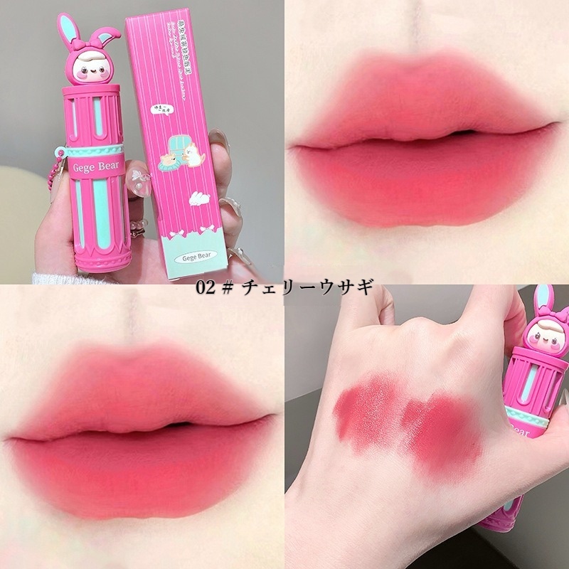 Gege bearかわいいウサギ リップ 泥リップ マットリップ 化粧品 ins人気リップ リップクリーム 長持ち 落ちない口紅 リップグロス 3d立体 クリアライト リップ ティント ツヤリップ qoo10メガ割