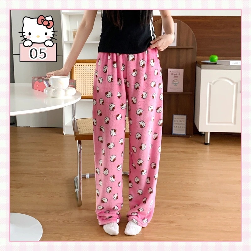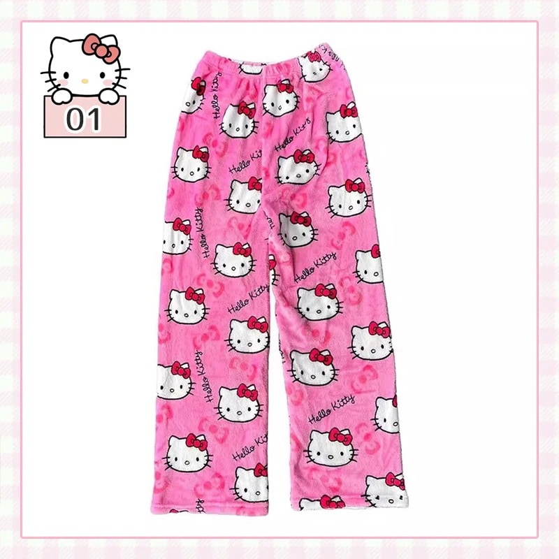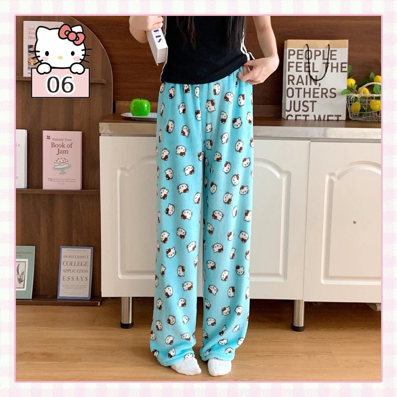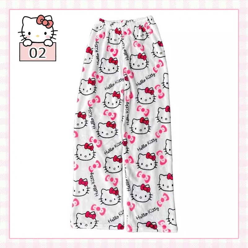 2枚2oo円FF!!!!話題の人気商品!裏起毛 部屋着 キティちゃん パジャマ ズボン 肌触り 外着可能 半ズボン長ズボン 厚手 ,2161634