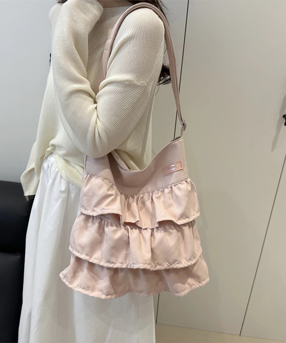 新作個性的デザイン ショルダー&斜め掛け バケツ型バッグ2WAY肩掛けカバン大容量斜め掛け鞄a4収納大人可愛い通勤通学 フリルトートバッグお出かけ鞄柔らかい 斜め掛けバッグ軽量 ガーリー鞄おしゃれ
