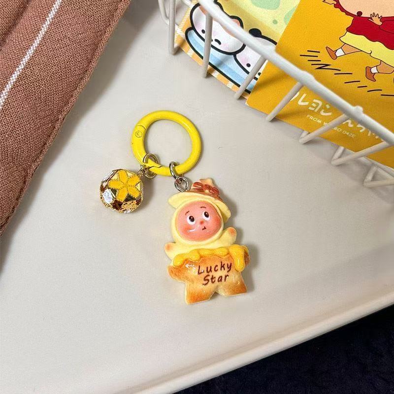 かわいらしいぽっちゃりした星形の掛け飾りカートゥーンキーリング少女用キーホルダーベル付き親友やカップルへの贈り物 バブルマート 可愛い 掛け飾り ベル 可愛いとんとん
