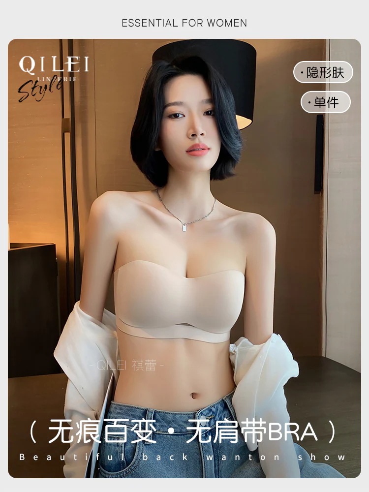 【3日出荷】ノンストラップブラジャー 滑り止め ノンワイヤー 谷間メイク 通気 ブラック薄手