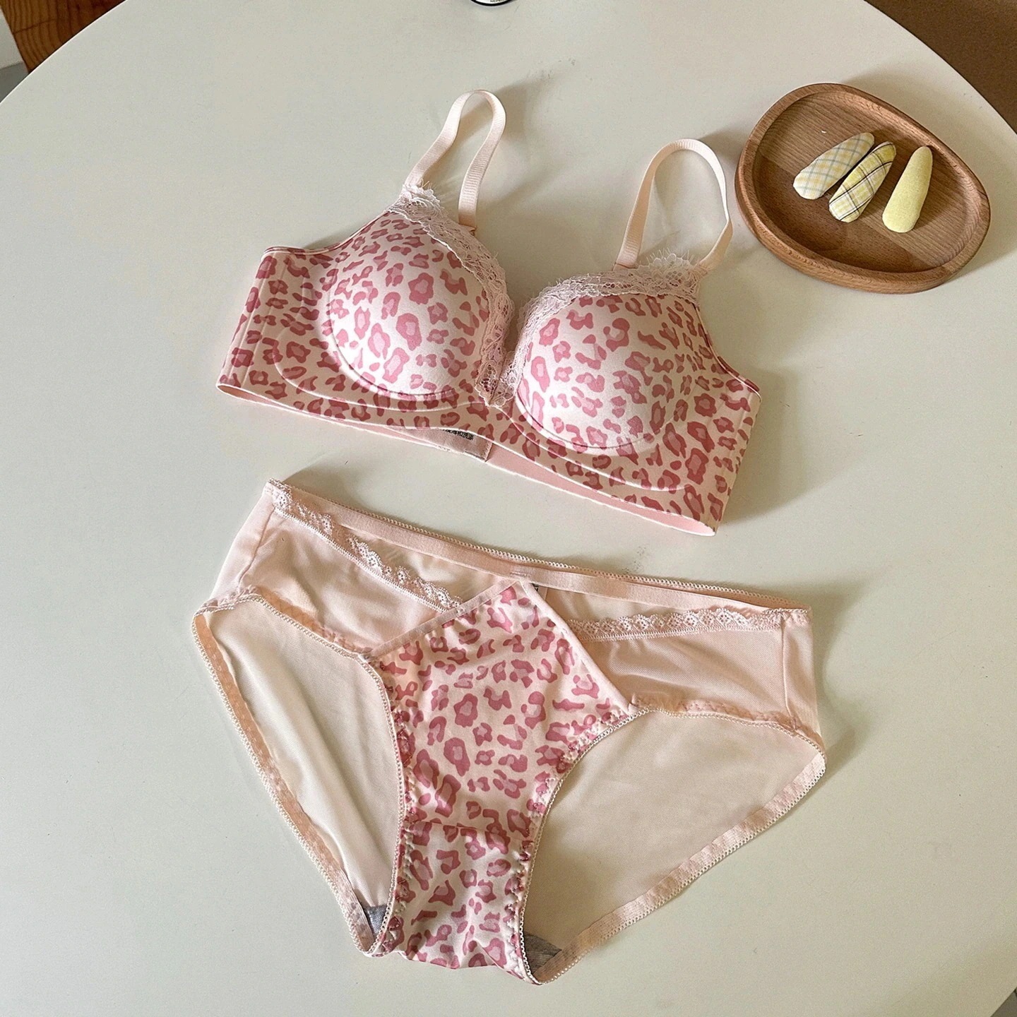 【3日出荷】超厚手ブラ 小さい胸谷間メイク 貧乳専用 下垂防止 レオパード レース 上下セット