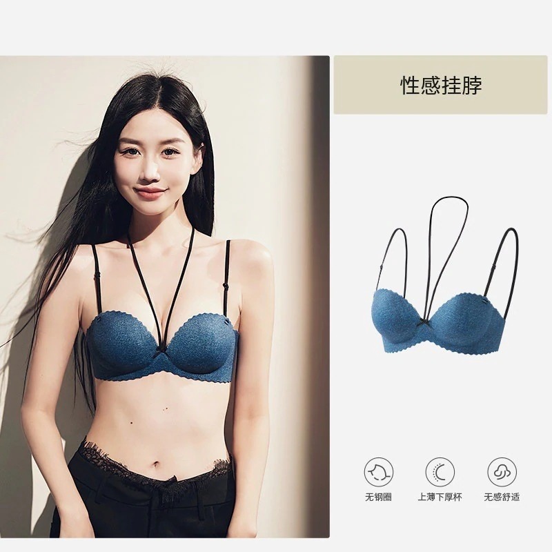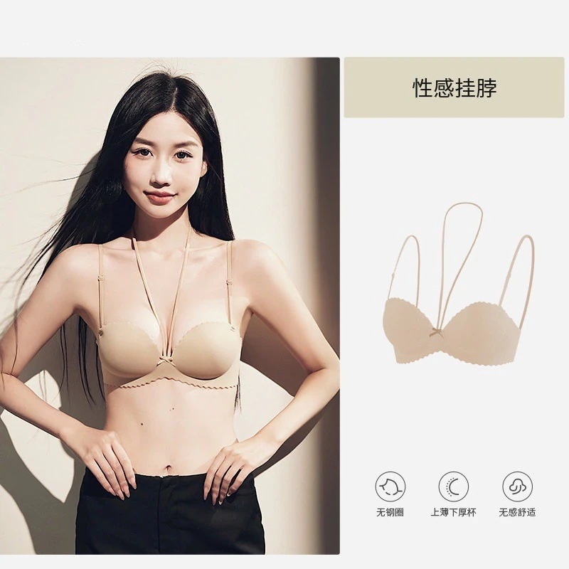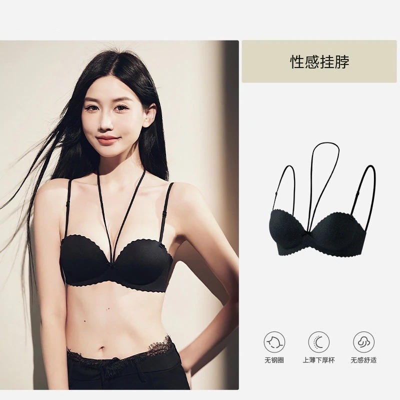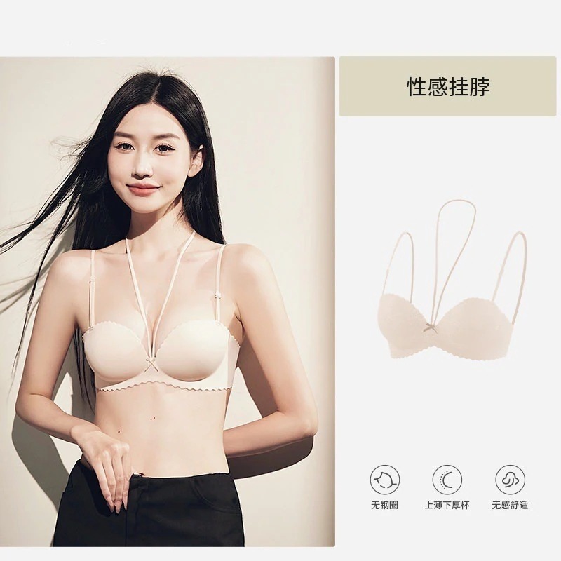 【3日出荷】セクシー細ストラップ ホルターネックブラ 小さい胸谷間メイク 下垂防止 脇肉キャッチ