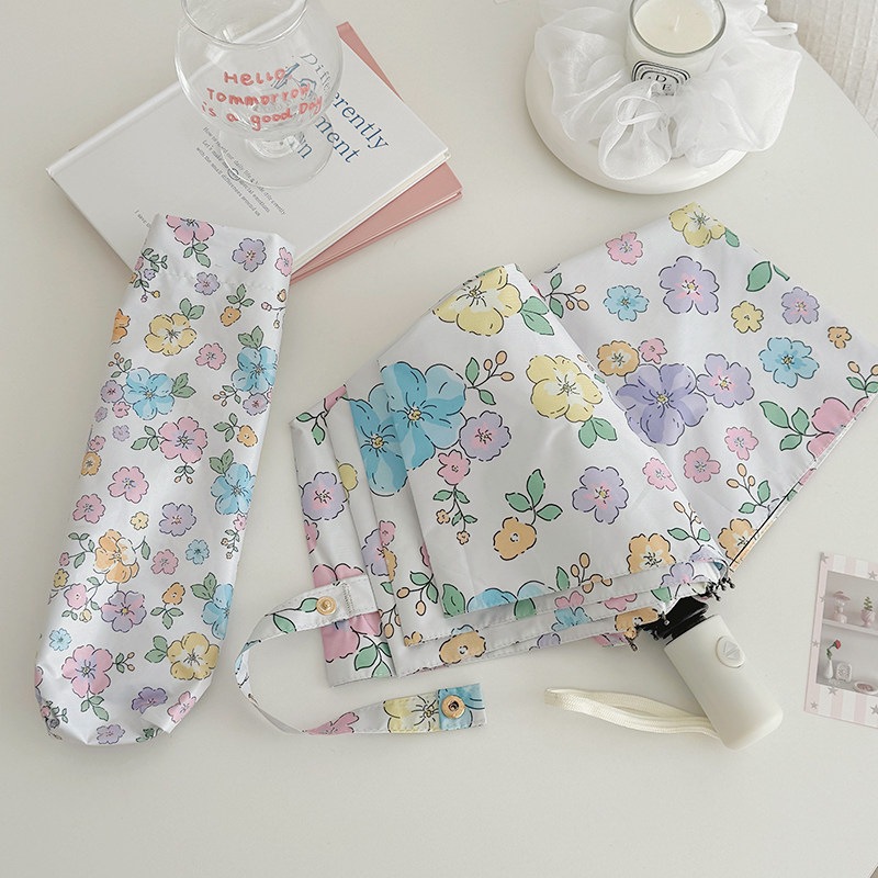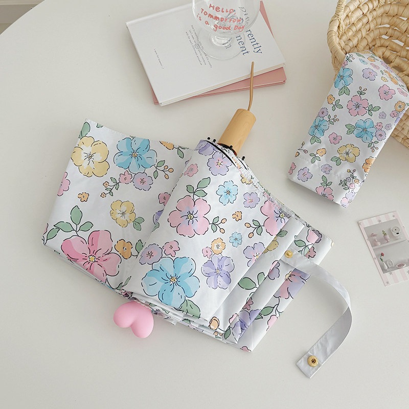 ins ハートボール 高颜値 フラワー柄 傘 女性用 晴雨兼用 黒胶 UVカット 紫外線対策 折りたたみ 日傘