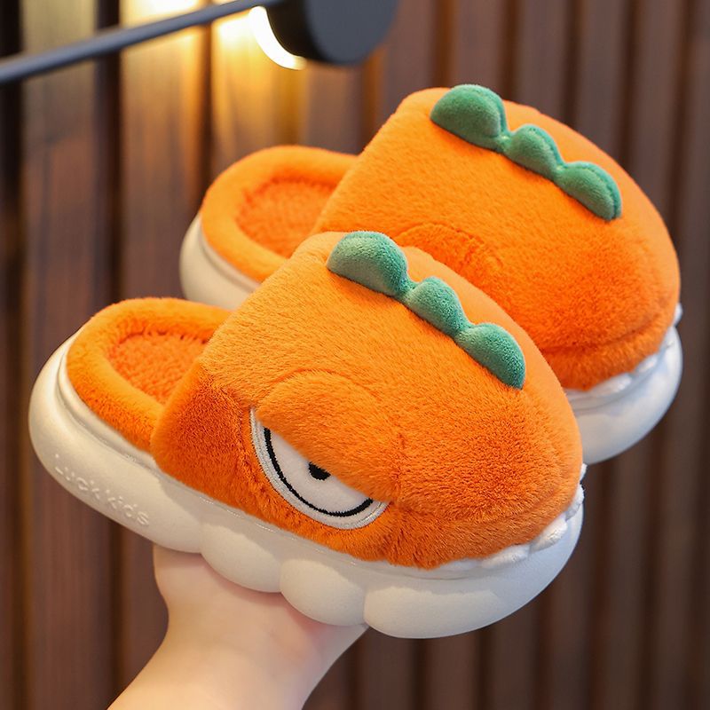 子供用コットンスリッパ男の子冬女の子かわいい子供用屋内ホームコットンシューズ付きベビーノンスリップ毛皮恐竜バッグ