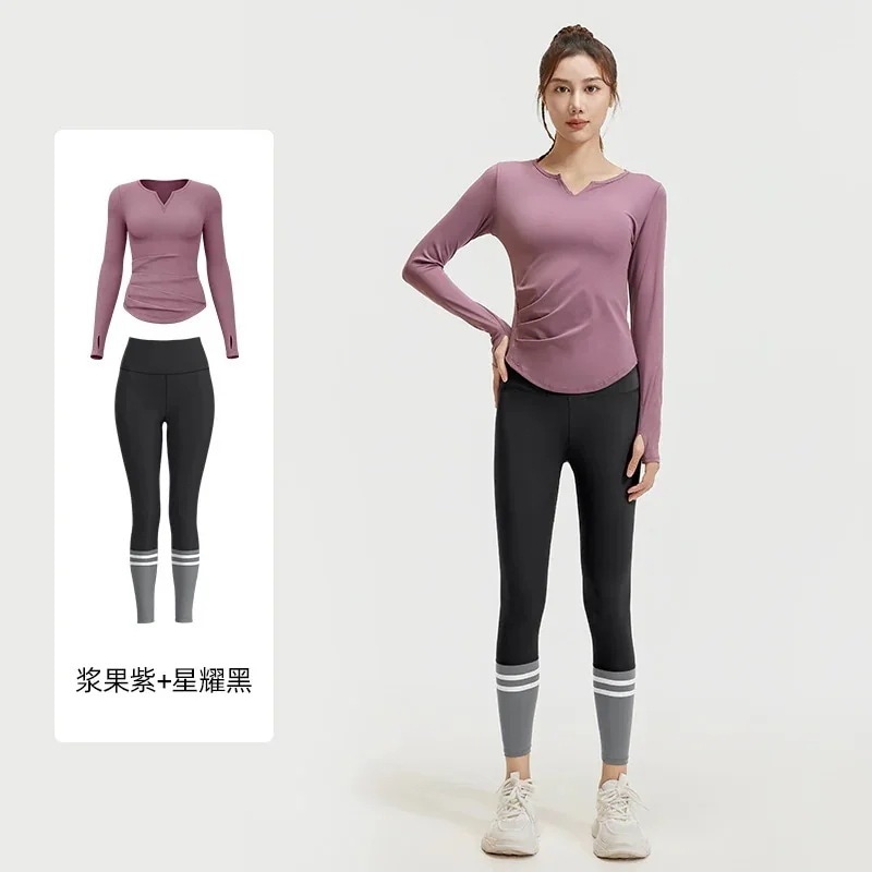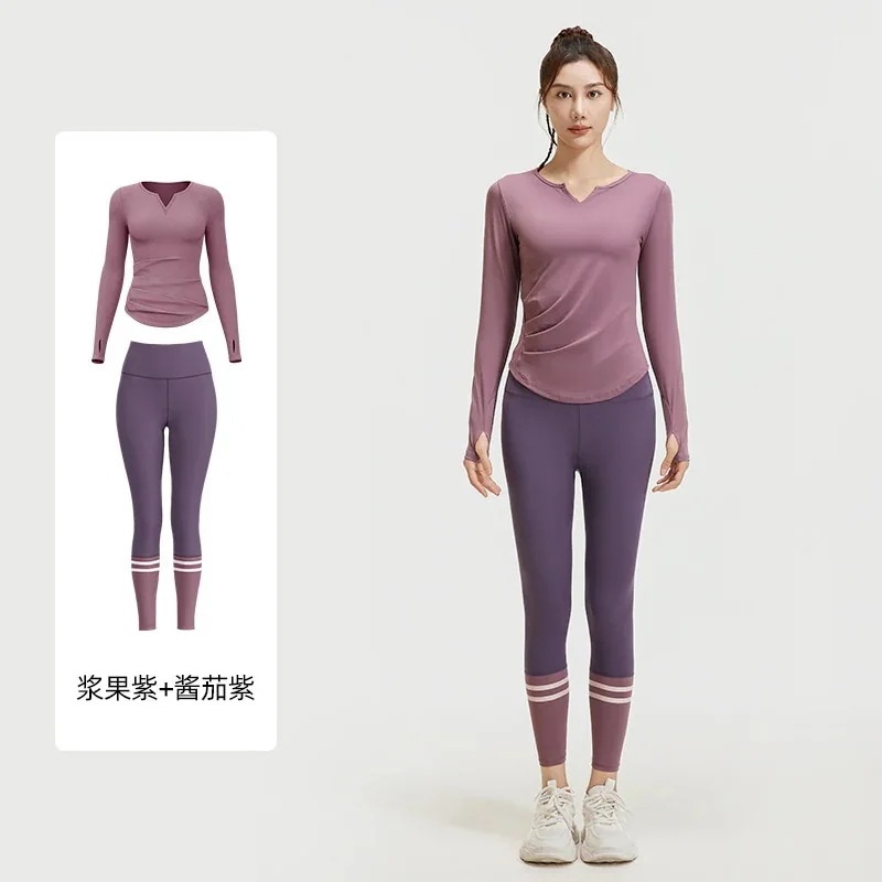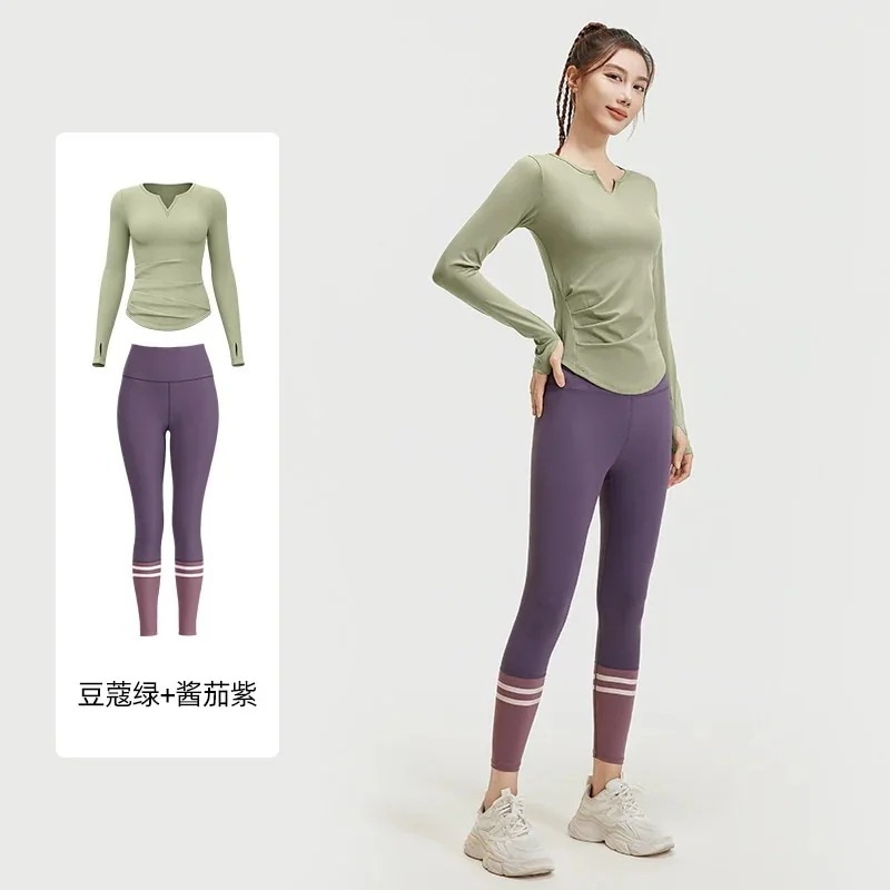 2026年 新商品 爆発的人気商品 おしゃれヨガウェア Vネック裸感覚ヨガウェアシームレス弾性ハイウエストヒップリフトフィットネススーツランニングスポーツサイクリングウェア 速乾 服
