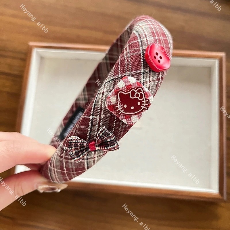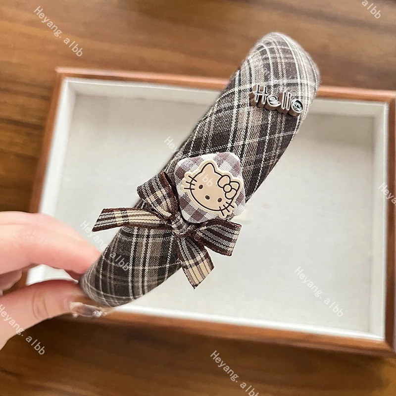カレッジキティ格子縞の色の衝突ファブリックヘアバンド圧縮ヘッドバンド