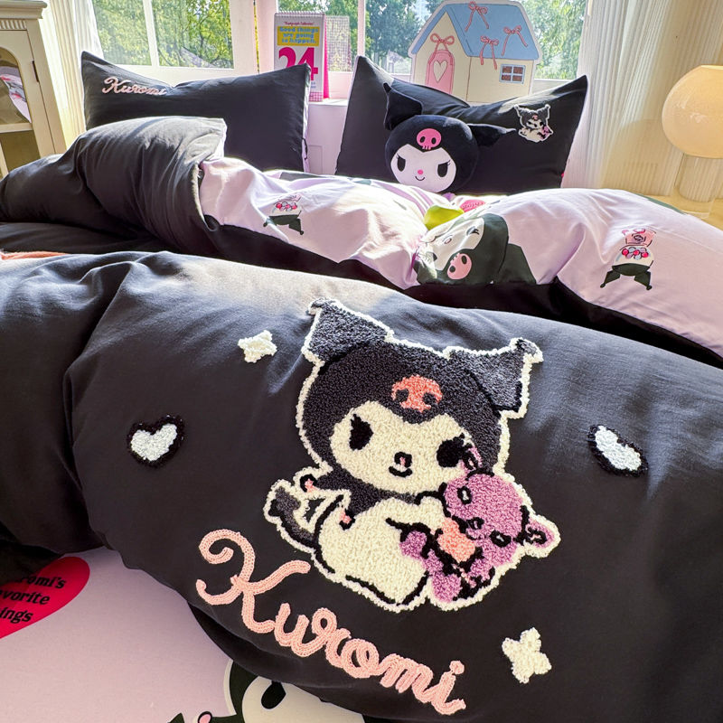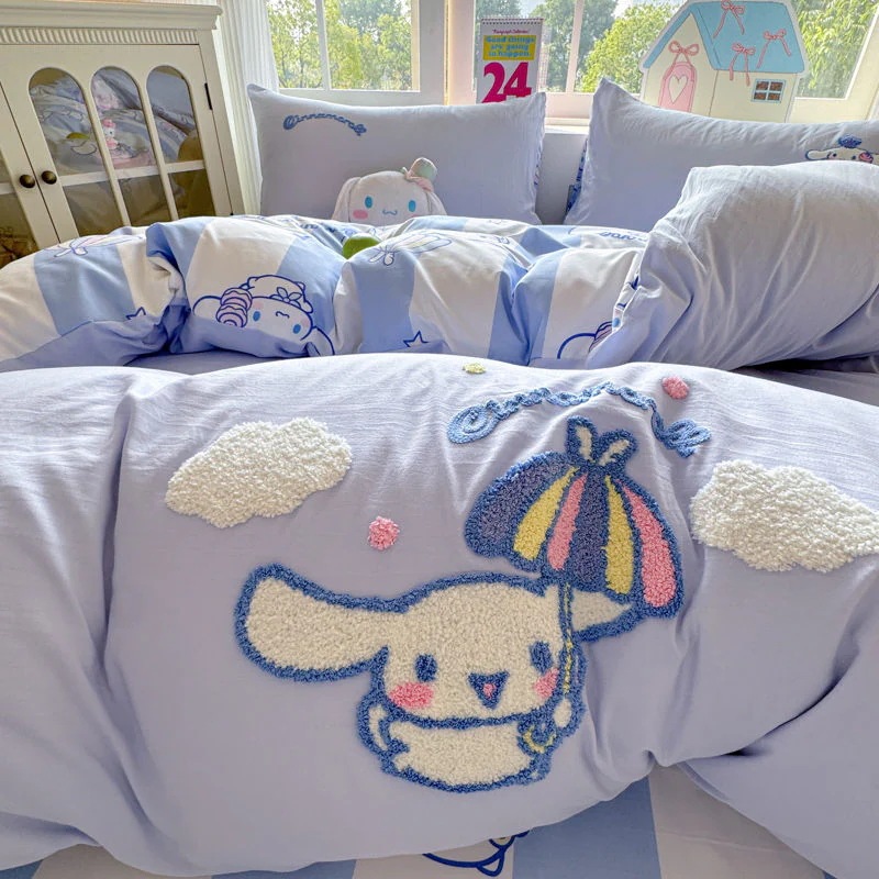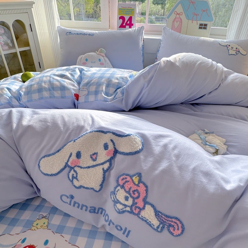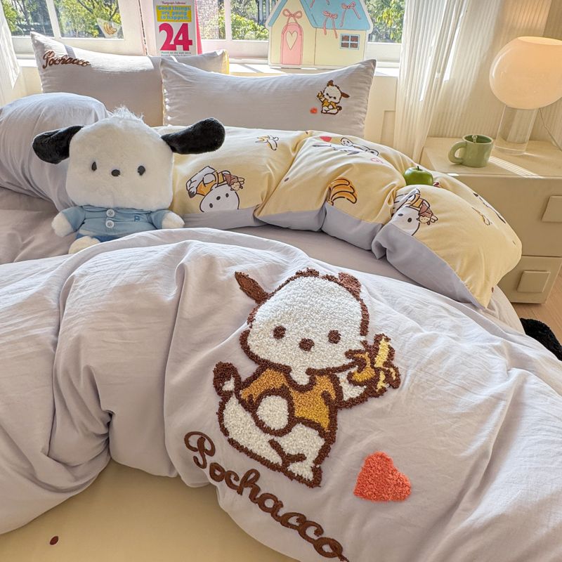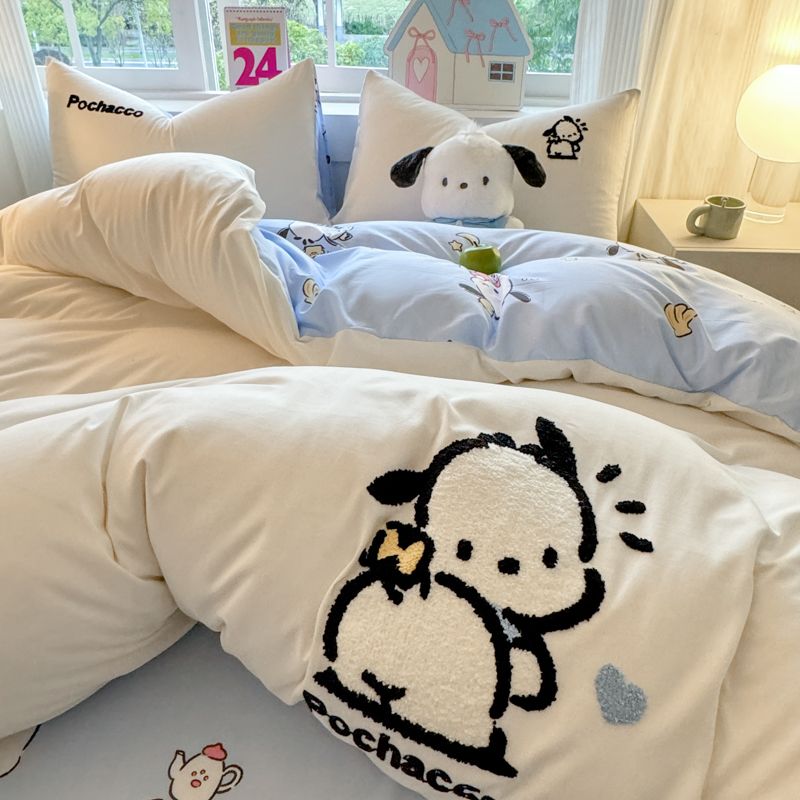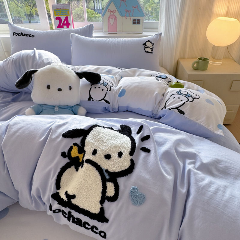 Insかわいいアニメの犬三麗鴎四点セットタオル刺繍水洗い綿シーツ布団カバー寮三点セット