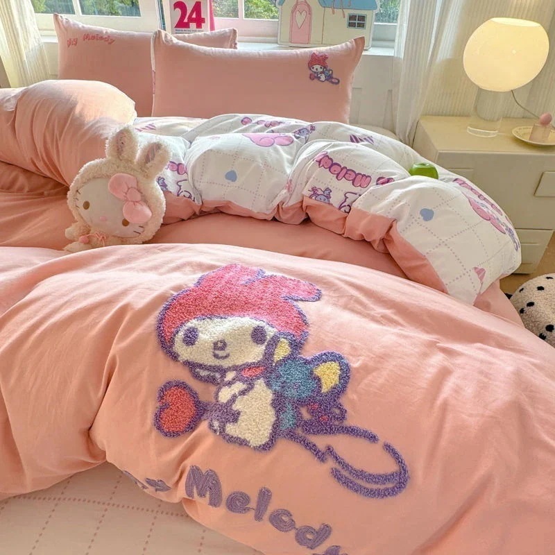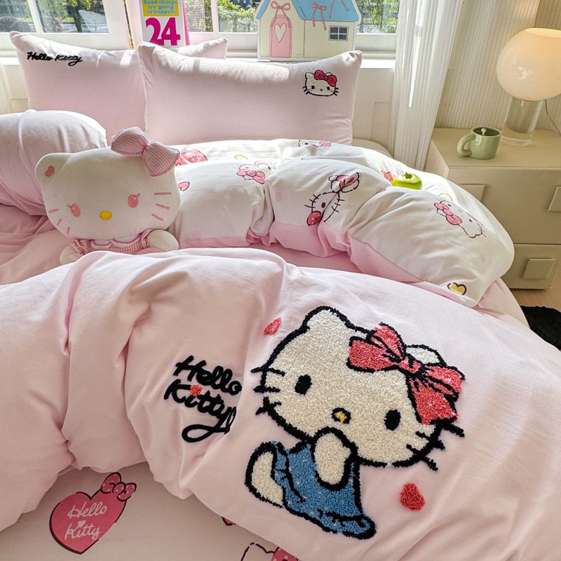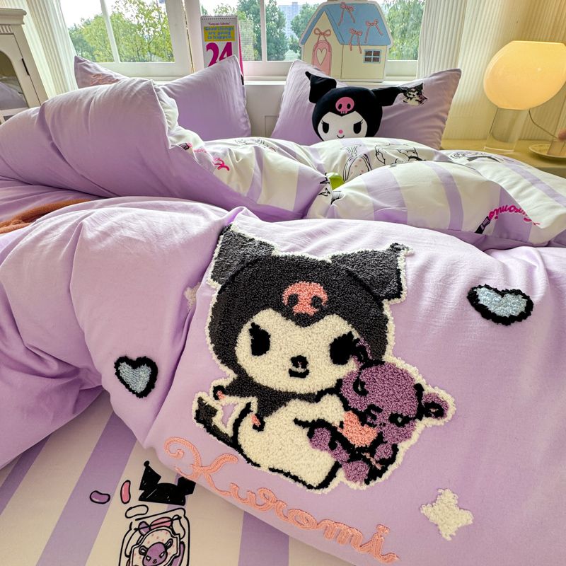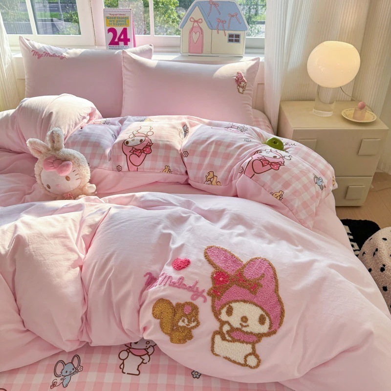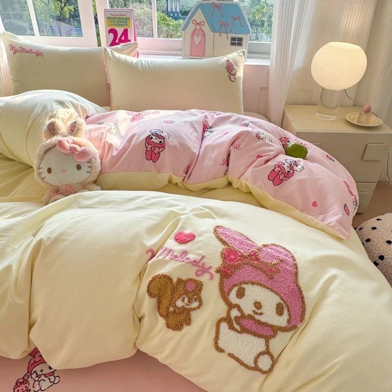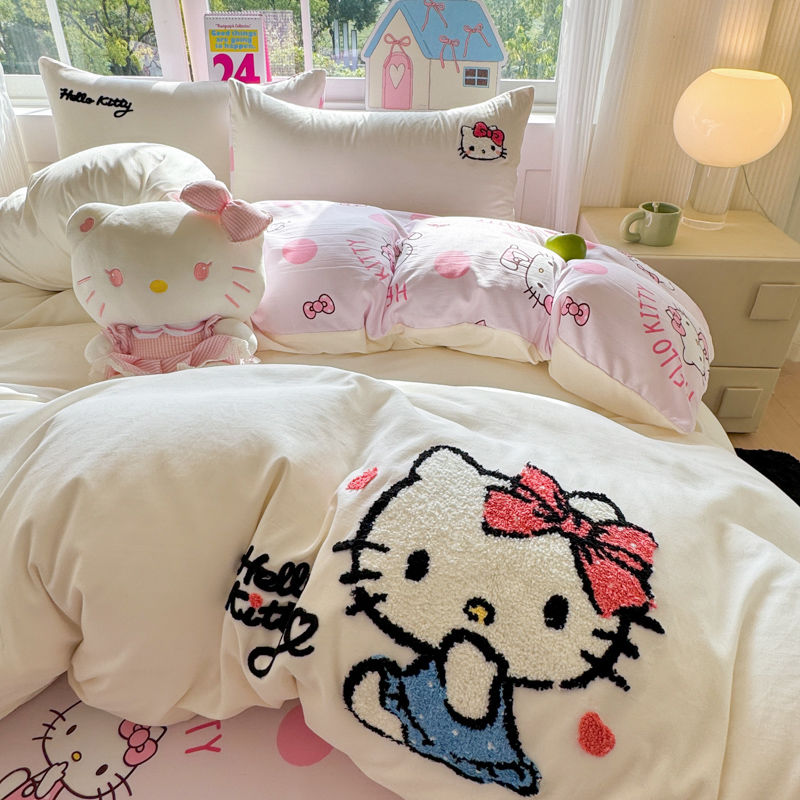 Insかわいいアニメの犬三麗鴎四点セットタオル刺繍水洗い綿シーツ布団カバー寮三点セット