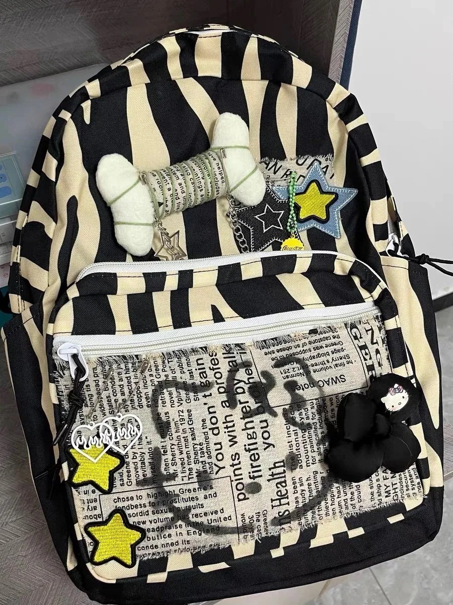 選べる-超人気 ハローktドゥ オールドゼブラ柄 カレッジスタイル バックパック ボーン 大容量25