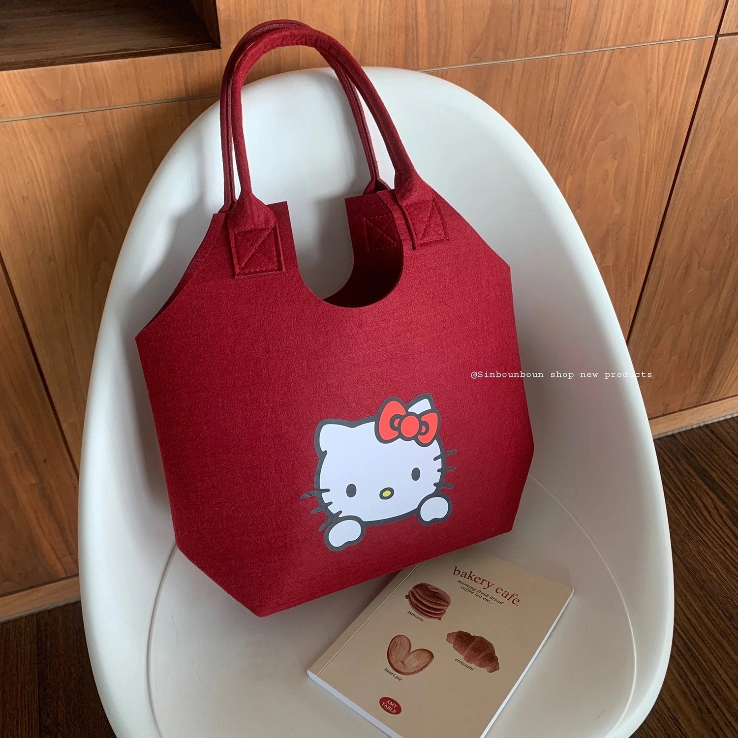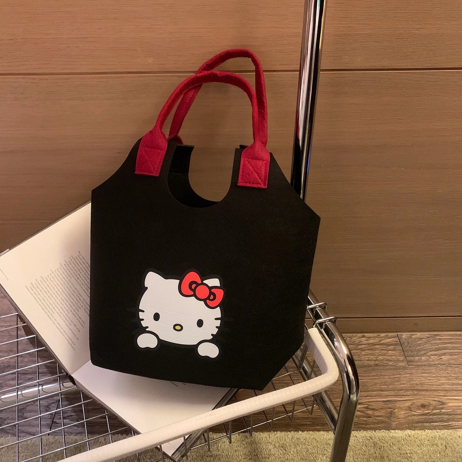 速達! 軽量ワンショルダー毛フェルトバッグかわいいキャラクター猫携帯外出手提げスーパーのショッピングバッグ