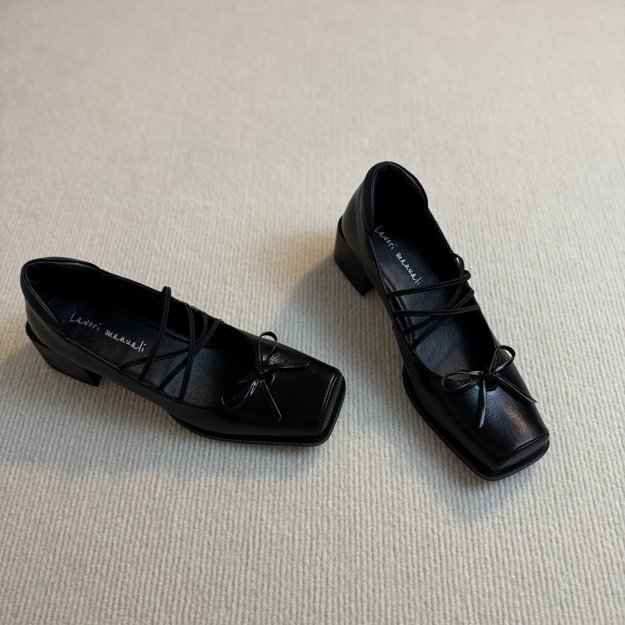 メリージェーンシューズ シープスキン スクエアトゥ バレエ クロスレースアップ ソフトレザー 夏用 レトロ リボン パンプス