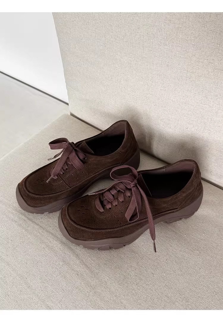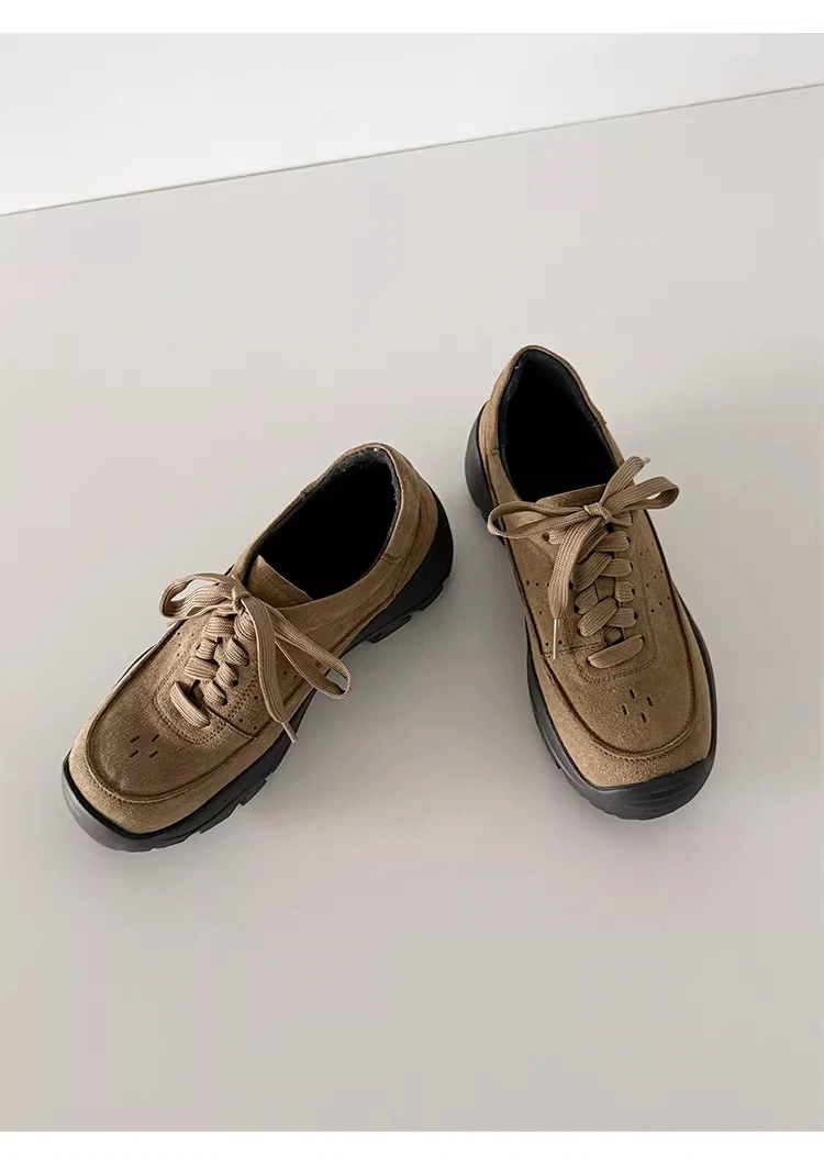 【3日出荷】厚底 カジュアルスニーカー レディースパンプス 春新作 ミドルヒール レースアップ 本革 通気