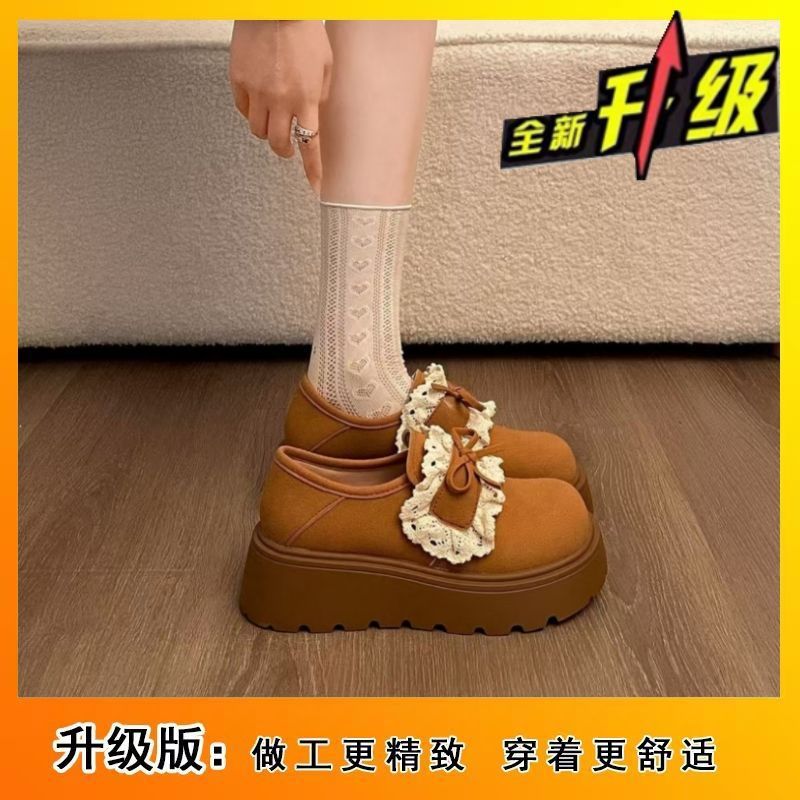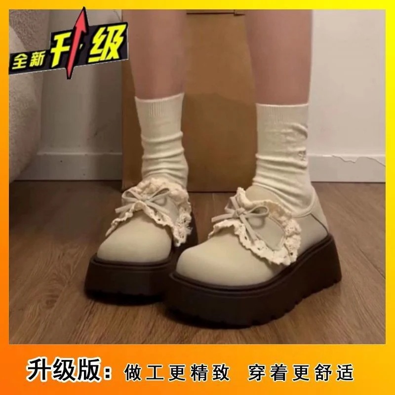 【3日出荷】レディース スエード ラウンドトゥ シークレットヒール ローファー 新作 アカデミア風 レースリボン 厚底パンプス