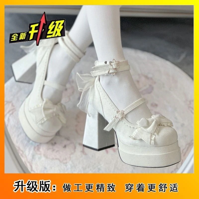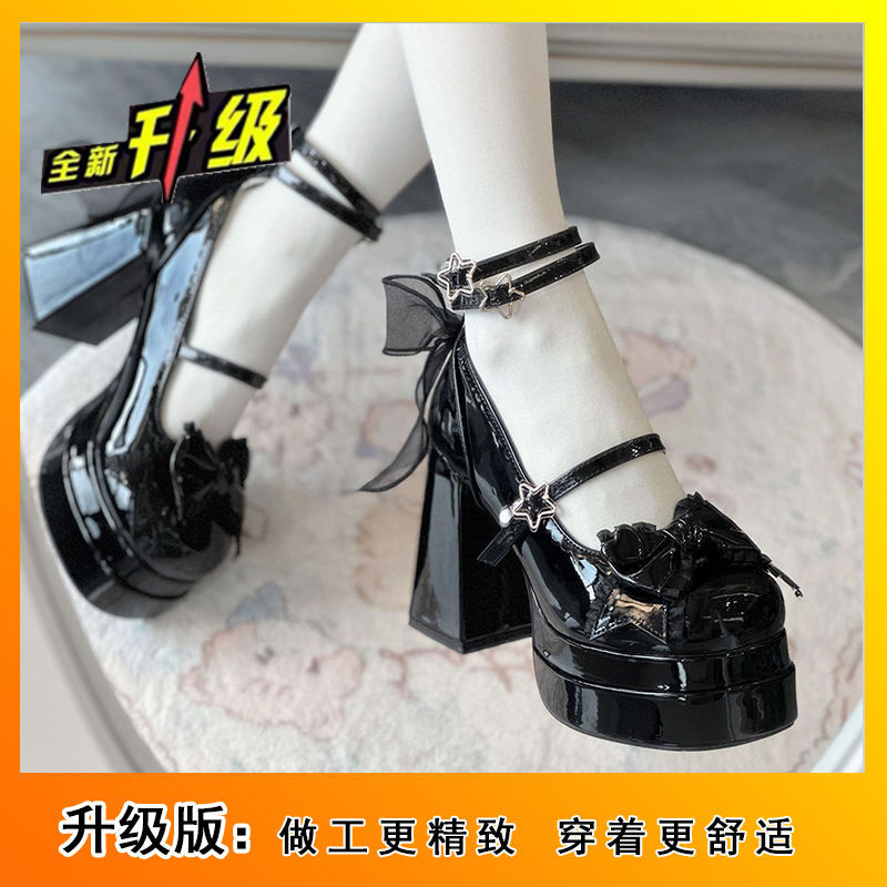 【3日出荷】レディース 甘め ロリータシューズ ラウンドトゥ かわいい ガーリー JK ハイヒール 防水台 メリージェーン