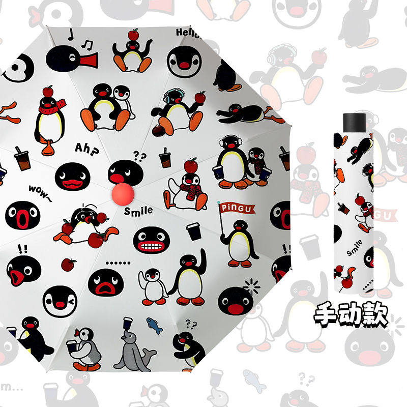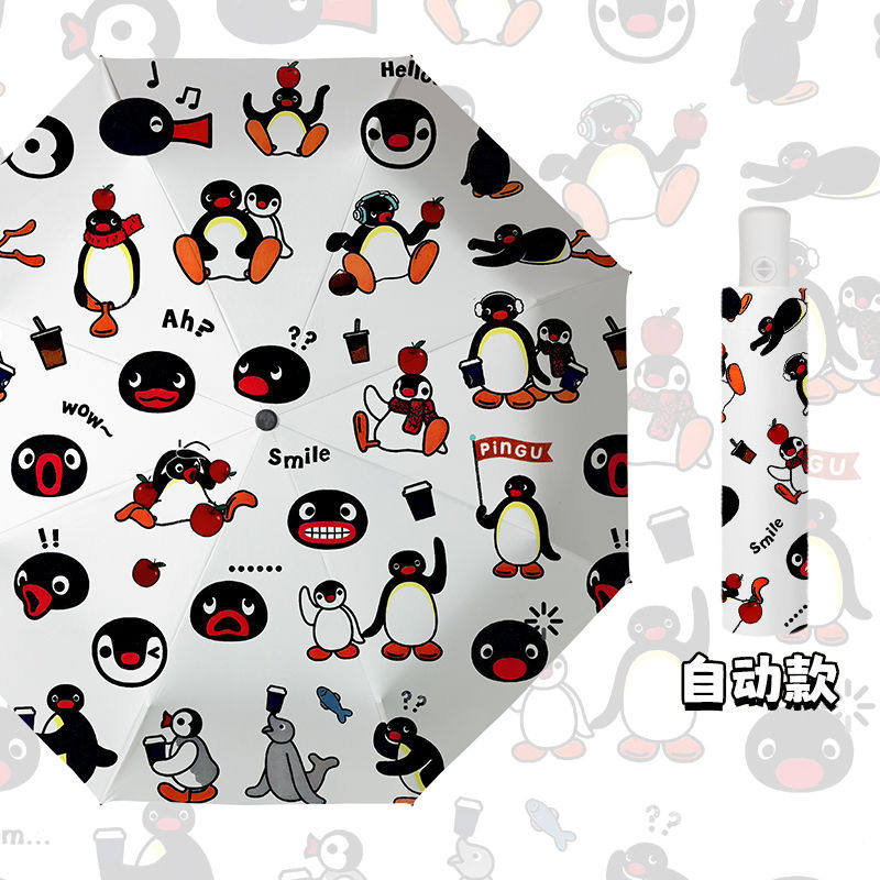 大人気 ins かわいい カートゥーン ペンギン 日常 雨傘 三つ折り 8本骨 折りたたみ 自動開閉 黒胶 UVカット 紫外線対策 日傘 晴雨兼用 コンパクト 携帯便利