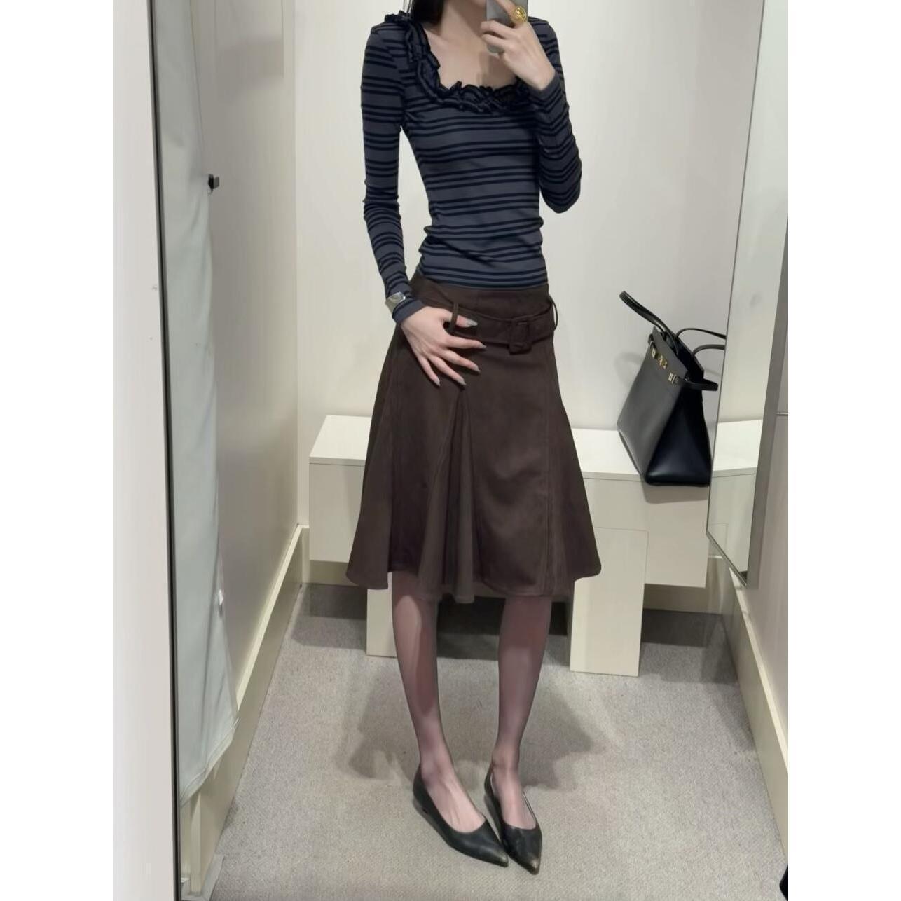 【3日出荷】秋韓国風 ヘビーウェイト フリル ムードスカート マーメイドスカート