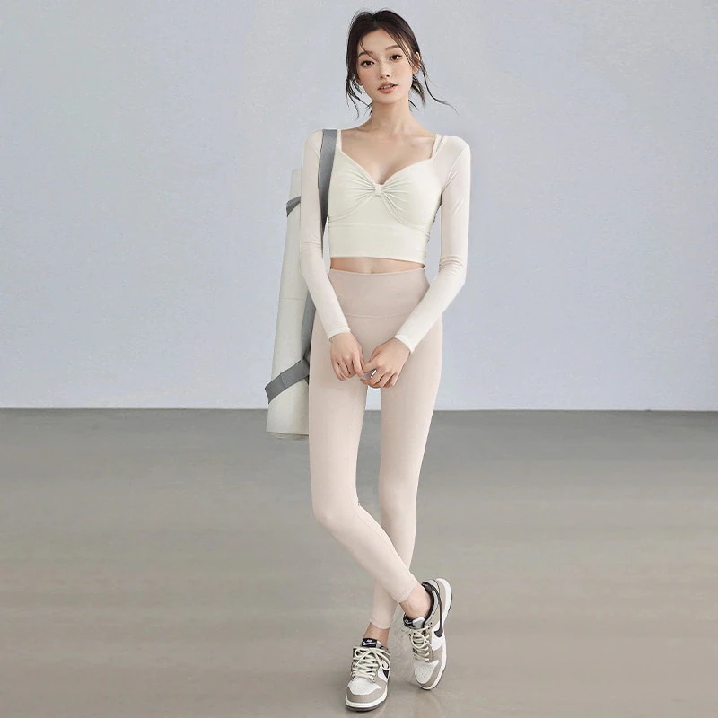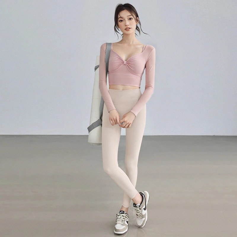 ヨガウェア レディース 2026新作春秋長袖パッド付きメッシュフィットネススポーツトップスピラティストレーニングセット