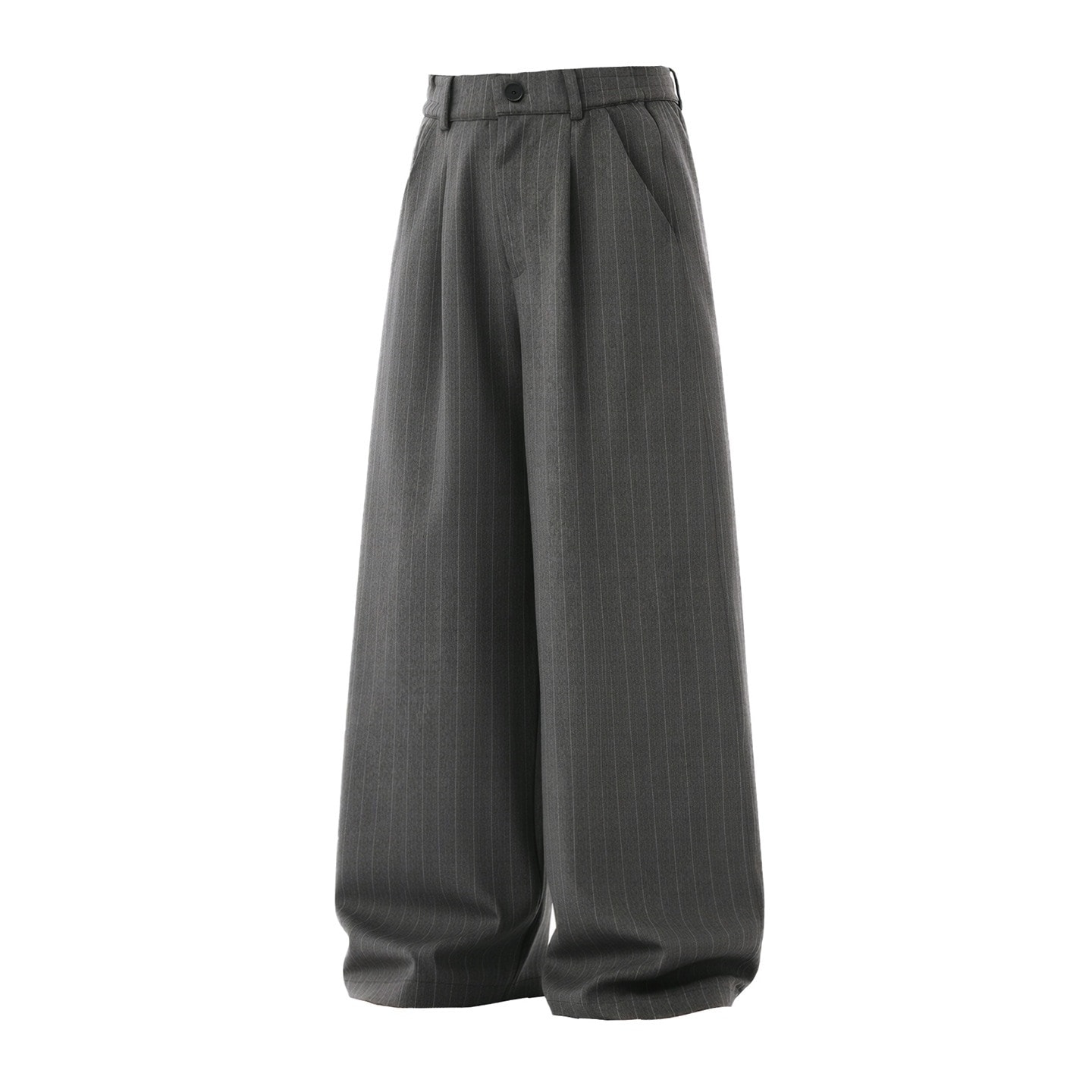 韓国しまスーツパンツ春秋ゆとりスラックスパンツ ストレートボトムス