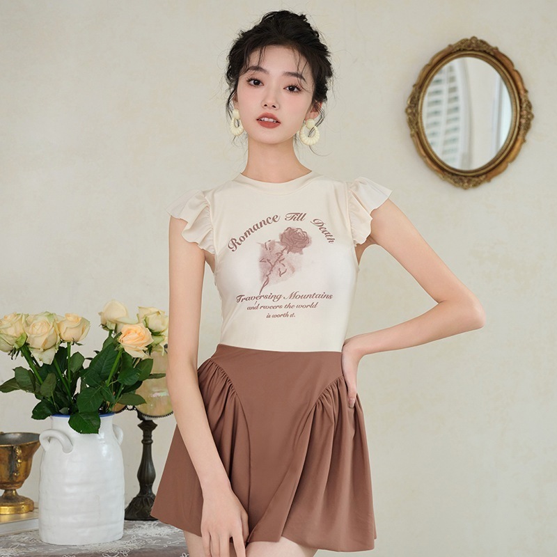 【3日出荷】キュートセクシー キュロット水着 体型カバー スリム 背中開き ワンピースレディース水着