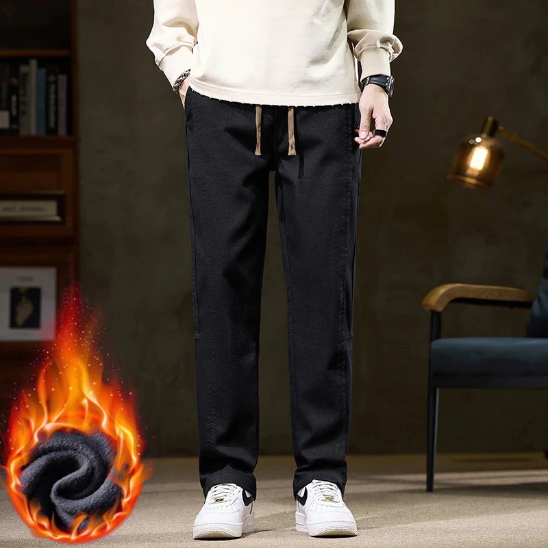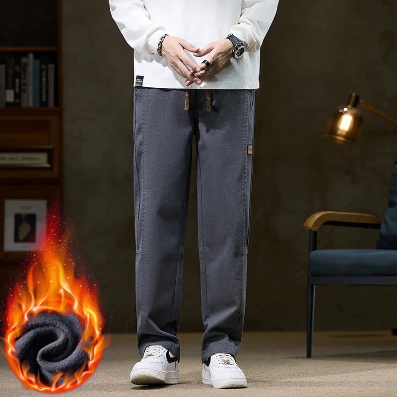 裏地付き冬新作裏地付きスウェットパンツ 男性用ストレートシルエット男性用パンツ冬用厚手ワイドレッグ男性用裏地付きスウェットパンツ