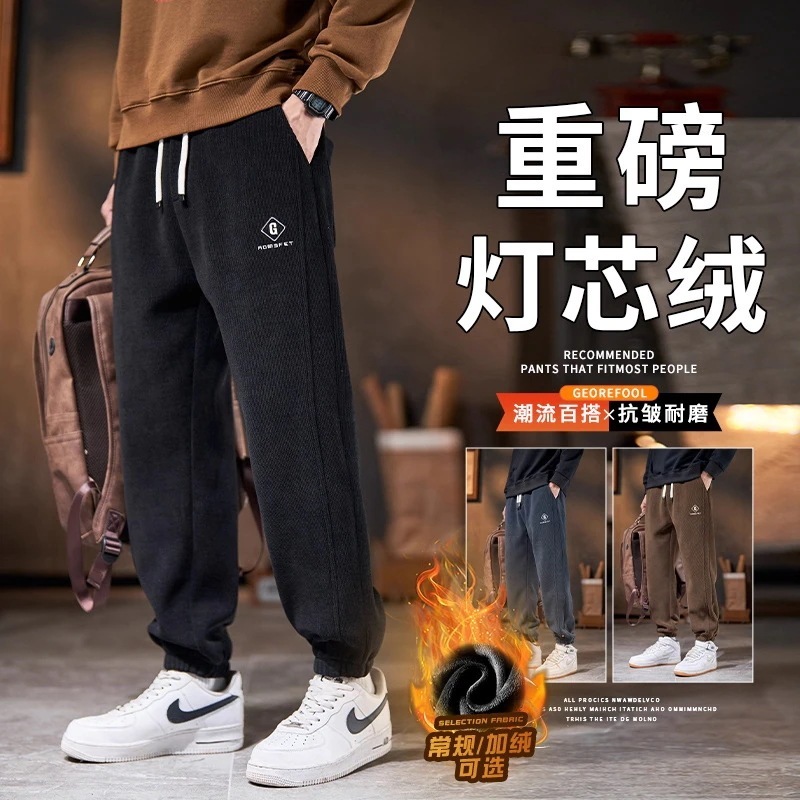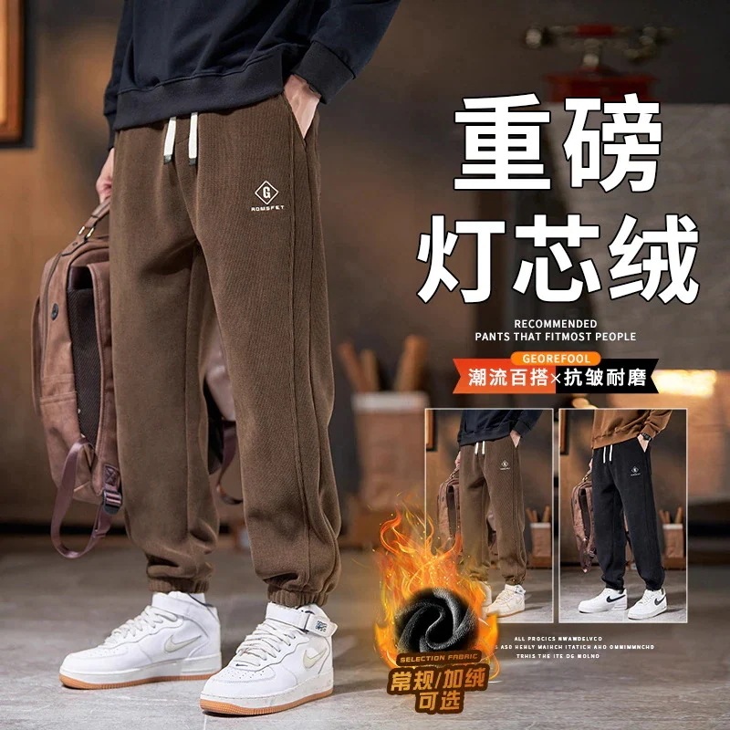 裏起毛 カジュアルパンツ メンズ 秋冬用 ゆったり 裾絞りロングパンツ ワークスポーツ厚手コーデュロイパンツ