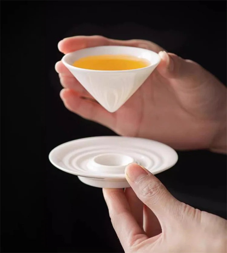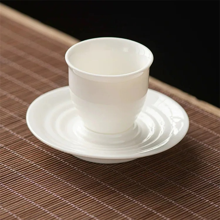 激安セール【セットで便利】40ml 陶磁器製 羊脂玉のような白 湯呑み&ソーサー 男女共に使いやすい 落ち着いたデザインで贈り物にもおすすめ