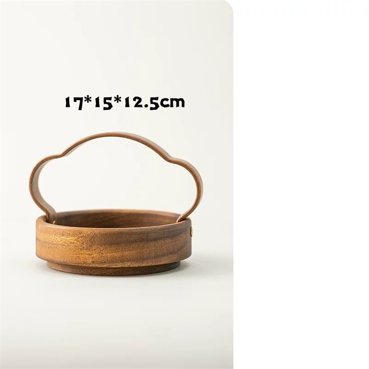 激安セール 2026年新登場 ナチュラルウッドの円形バスケット 手提げ付きで移動も楽々 ドライフルーツ菓子の整理に 手作り感溢れる胡桃製 シンプルでおしゃれな収納プレート