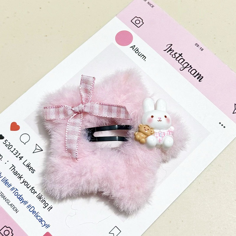 スイートキャットリボンクリップかわいいぬいぐるみスター前髪bbクリップサイドバングクリップ装飾
