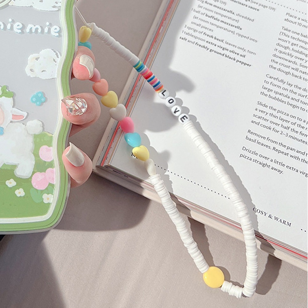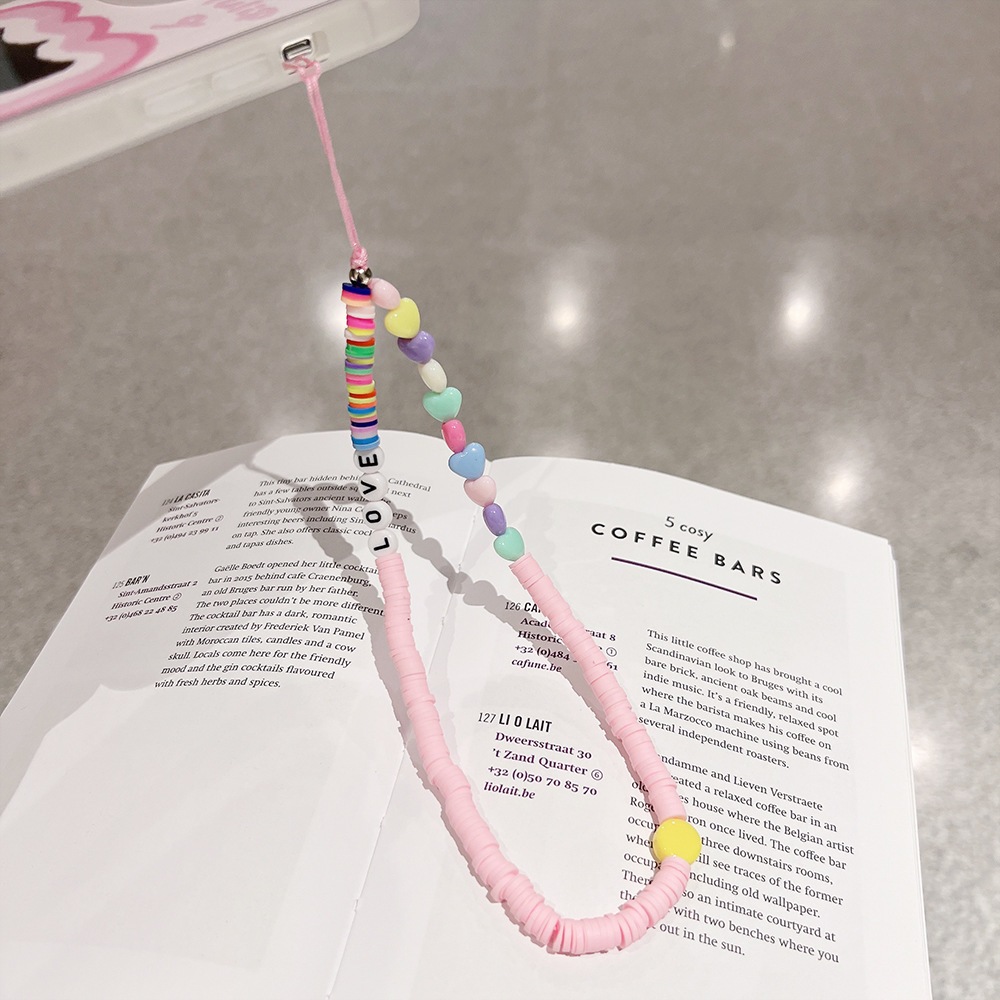 小清新カラーハートチェーン携帯ケースストラップiPhone 14女性用携帯手首ストラップストラップ