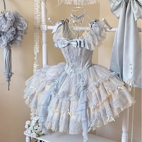 【3日出荷】ブルースワンバレエスカート リボン ロリータ かわいい 洋服 プリンセススカート jsk ワンンピース 春服 レディース
