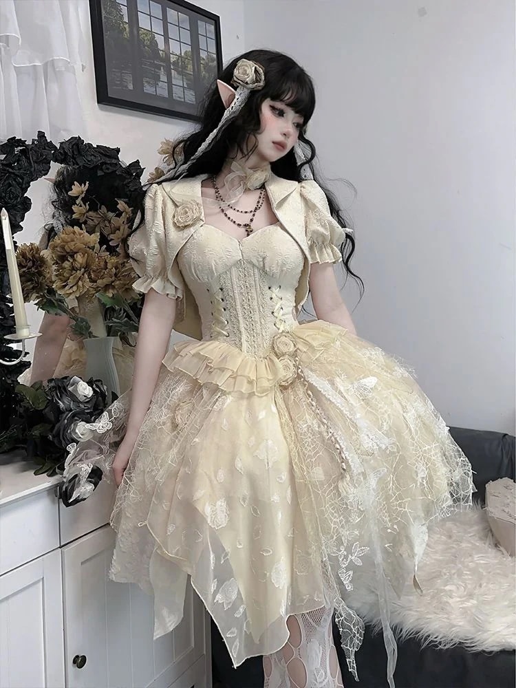 【3日出荷】2026年 ロリータ ワンピース+花+キャンバスショルダー ダークjskスカート