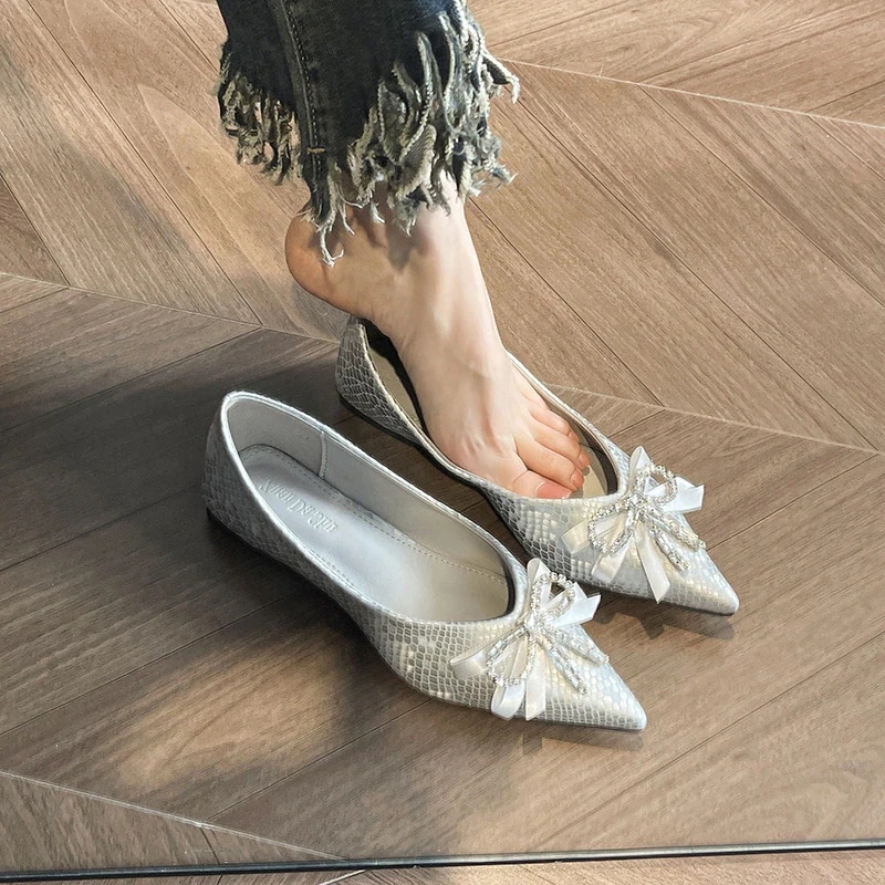 春映えシューズ楽ちんフラットパンプス パンプス ポインテッドトゥ 大きいサイズ平底 花嫁ワンペダルシューズ