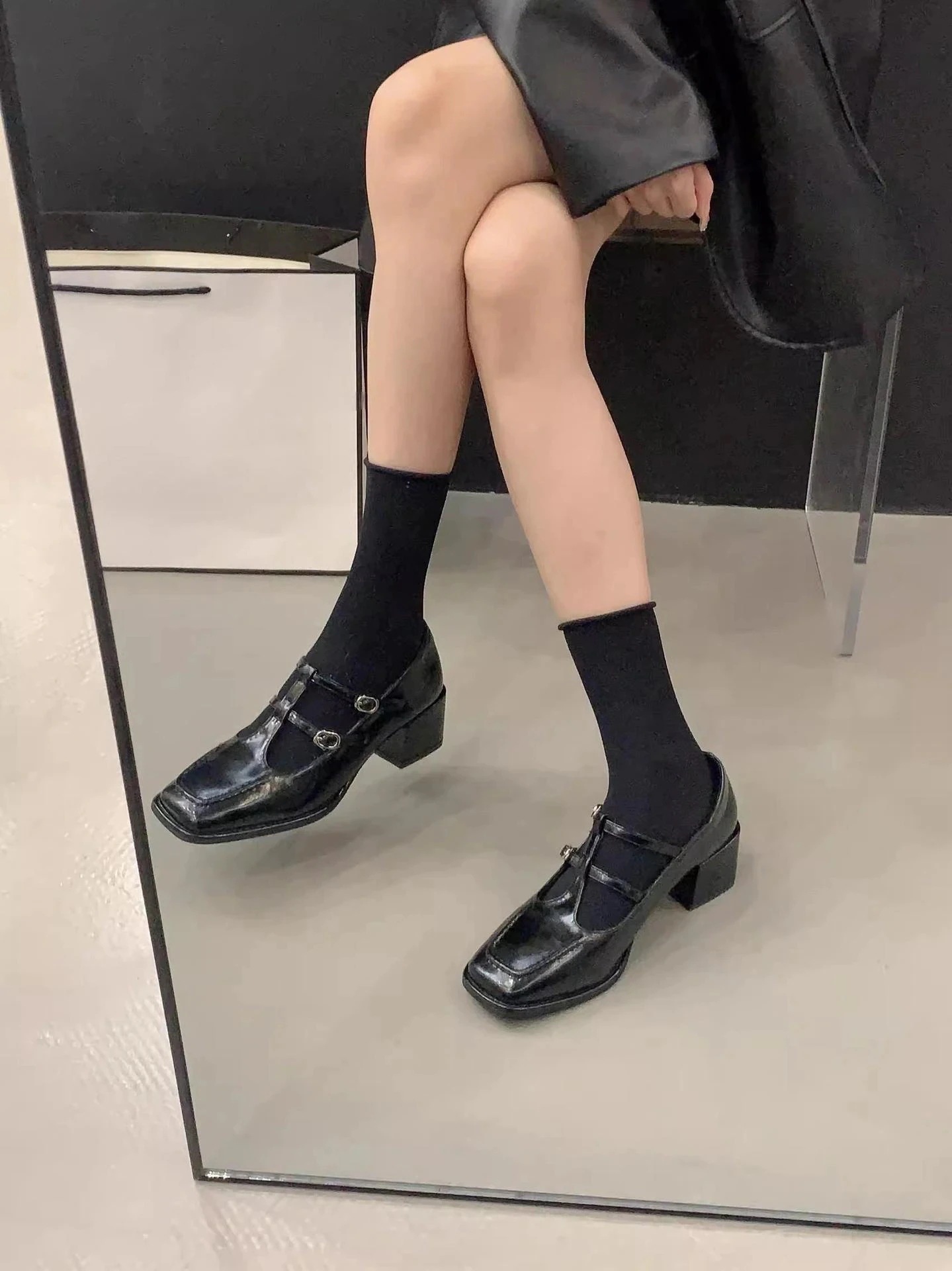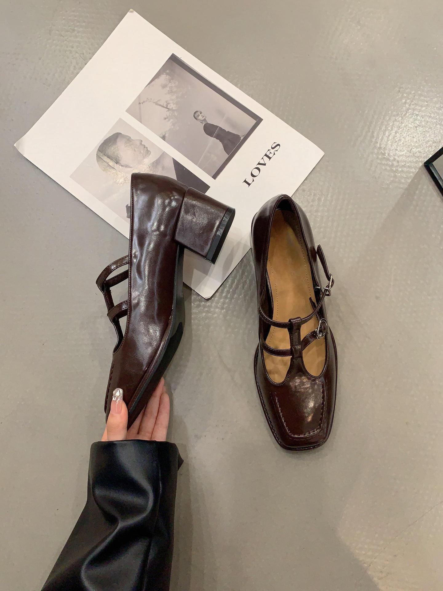 レトロな甘いメリージェーン靴女性革靴秋の新太いパンプス 晩風ローファー ミドルヒールシューズ