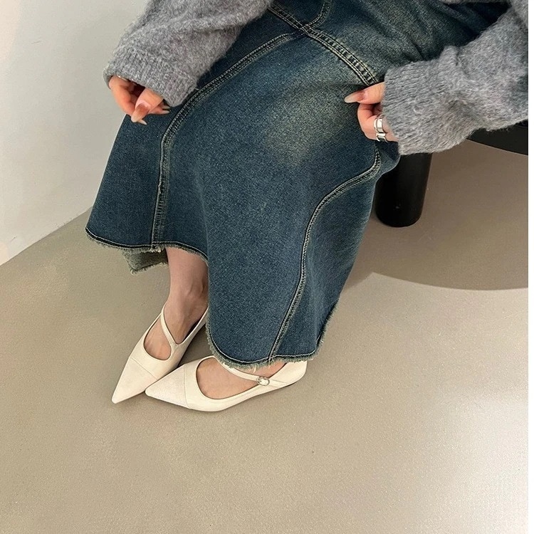 春映えシューズレトロな茶色の先の靴の女性2026の新しい平底パンプスのボタンはフランスの平底メリージェーン靴