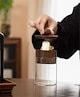 激安セール 2段式木製綿棒収納ケース 2026モデル ガラス罐蓋付き 昇降式携帯綿棒筒 家庭用デスク収納 お手入れ簡単 防潮防塵 シンプル大气 各種家庭シーンに適合