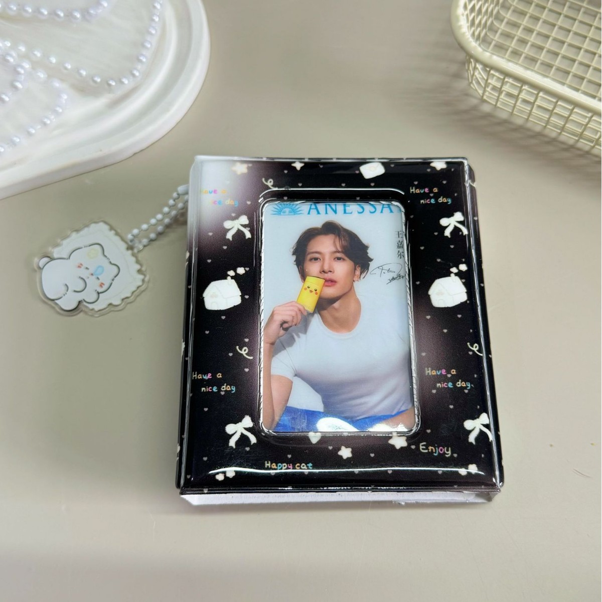 かわいいピクセル子猫カードホルダーカードバッグ3インチ1グリッド小さなカード収納ブック食事カードid