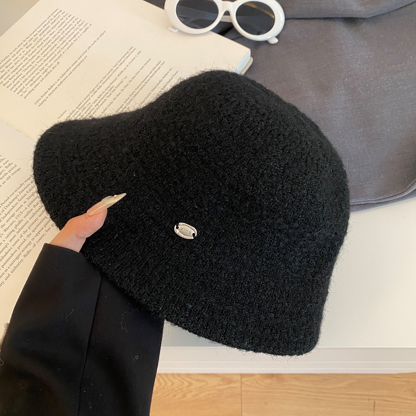Xiaoxiang エレガントなニット漁師帽子洗面器帽子大きな頭囲顔が見える小さなバケットハットトレンディ