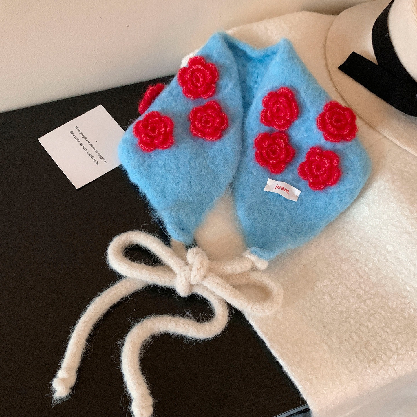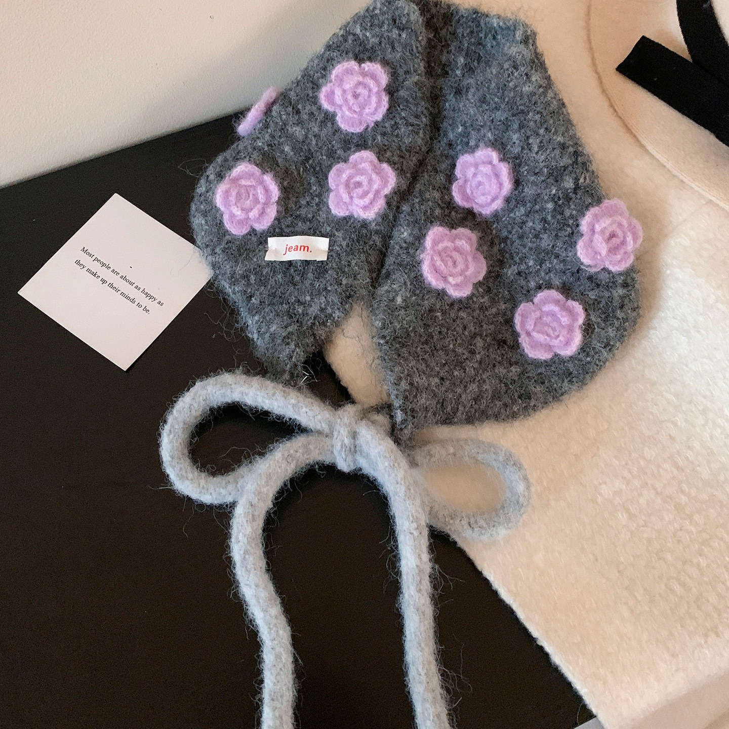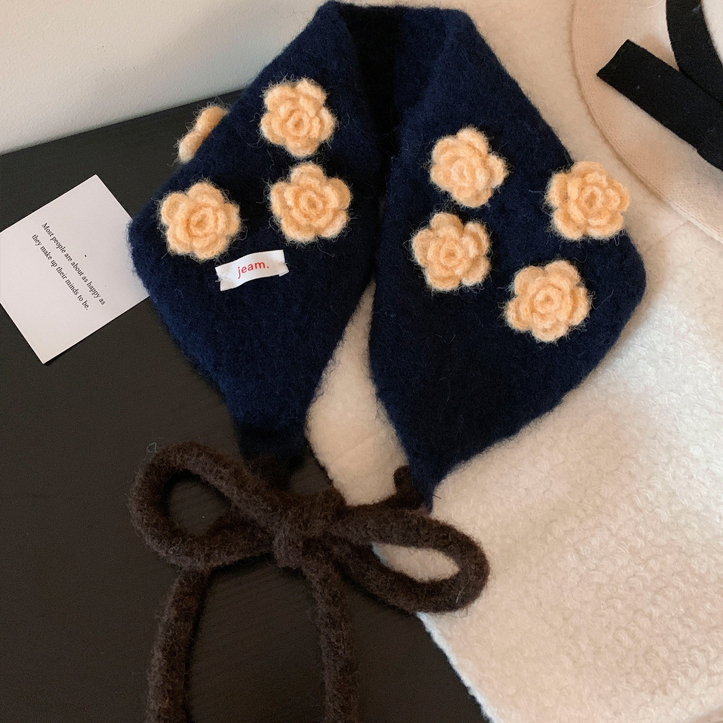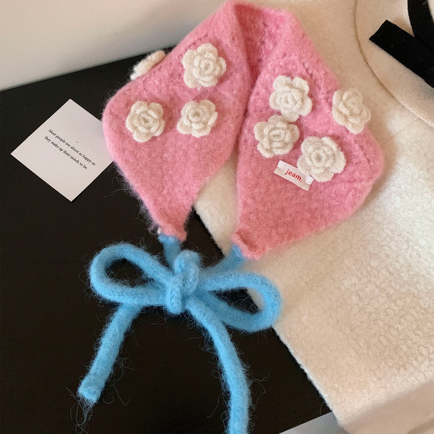 フラワーニットイヤーマフウォームネックスカーフイヤーマフ耳保護帽子イヤーウォーマー